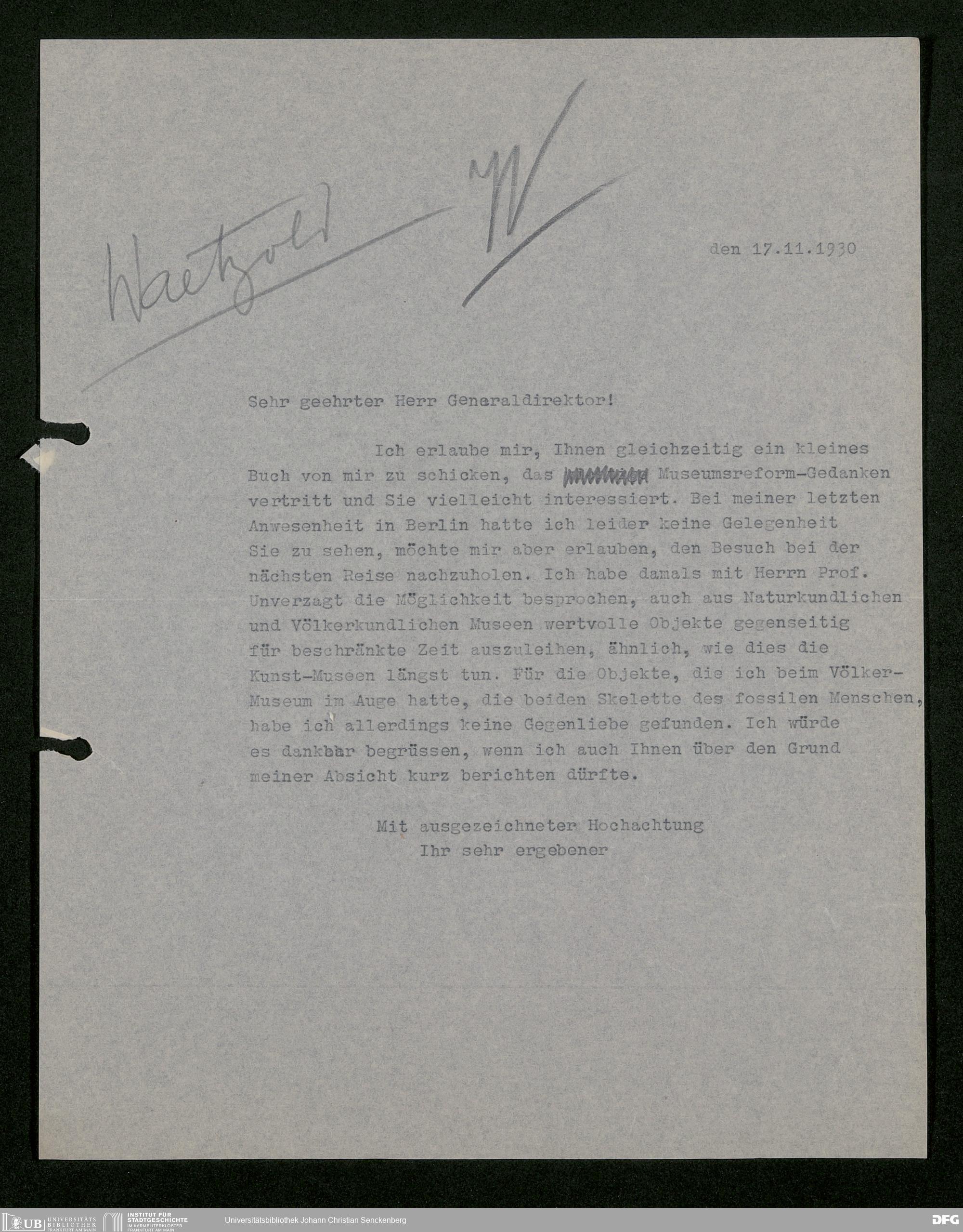 V176 Senckenberg Gesellschaft für Naturforschung, 483 - Korrespondenz des geschäftsführenden Direktors Fritz Drevermann
