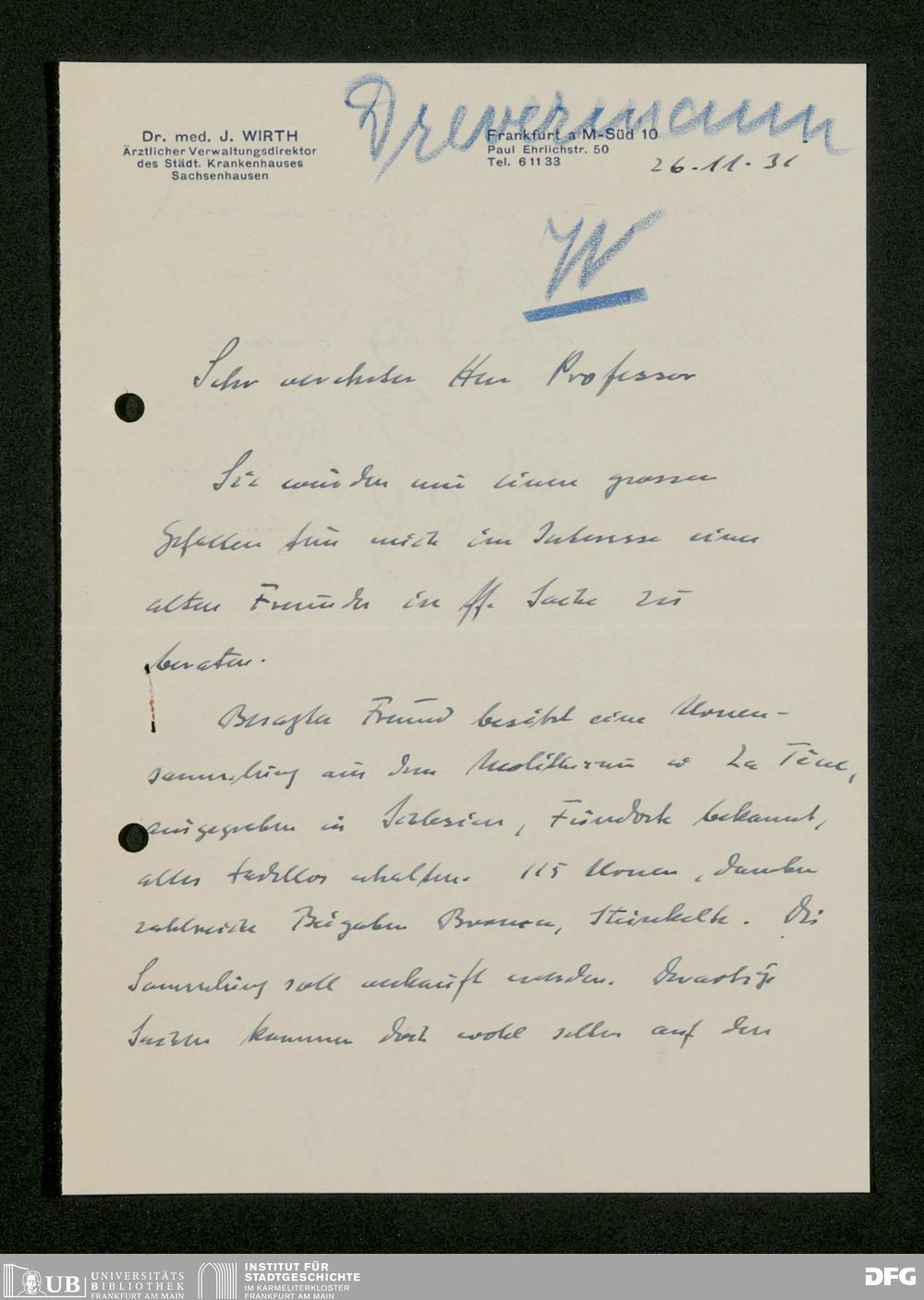 V176 Senckenberg Gesellschaft für Naturforschung, 483 - Korrespondenz des geschäftsführenden Direktors Fritz Drevermann