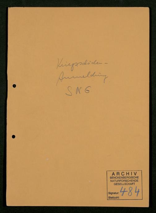 V176 Senckenberg Gesellschaft für Naturforschung, 484 - Anmeldung der Kriegsschäden