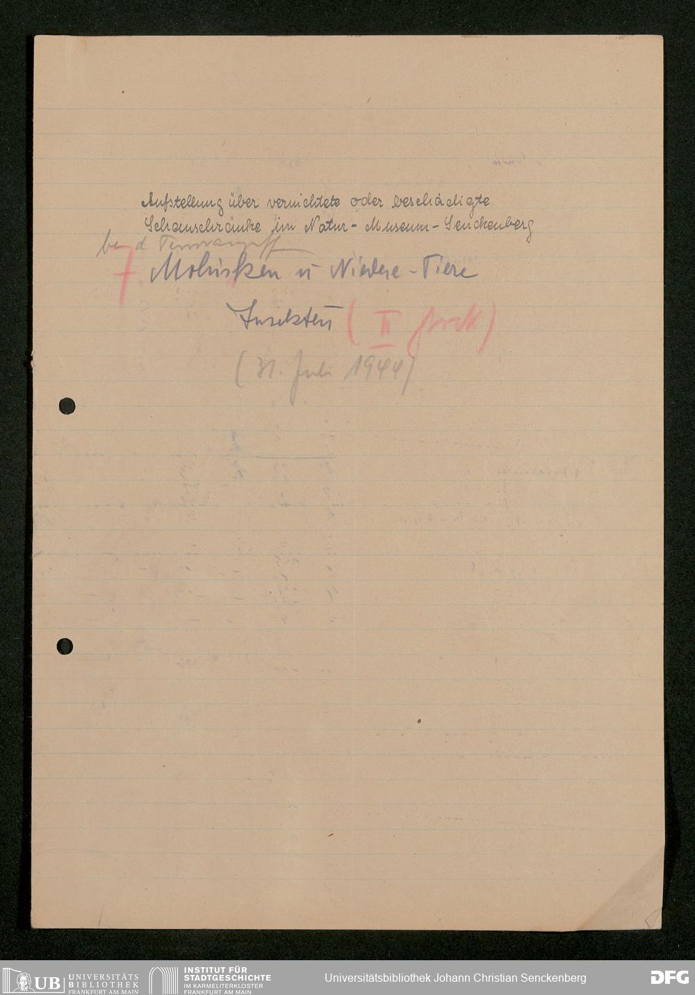 V176 Senckenberg Gesellschaft für Naturforschung, 484 - Anmeldung der Kriegsschäden