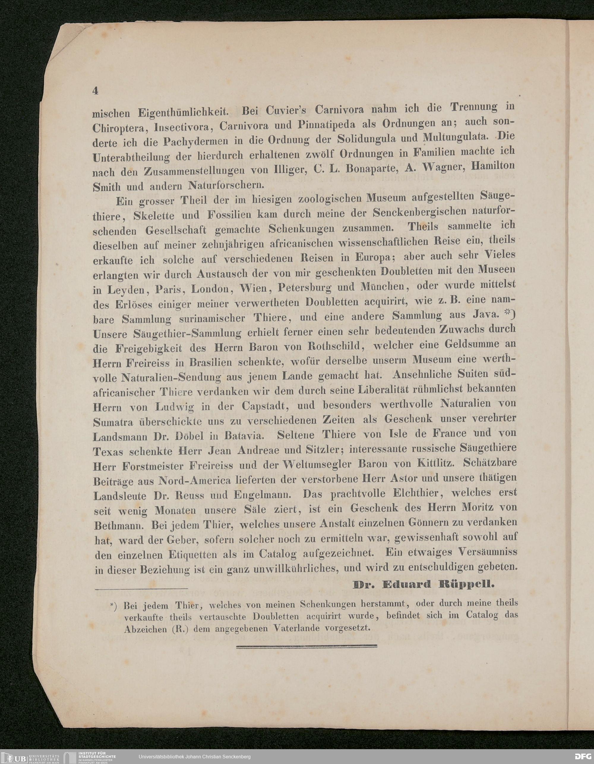 V176 Senckenberg Gesellschaft für Naturforschung, 485 - Eduard Rüppell, "Verzeichnis der in dem Museum der Senckenbergischen Naturforschenden Gesellschaft aufgestellten Sammlungen"