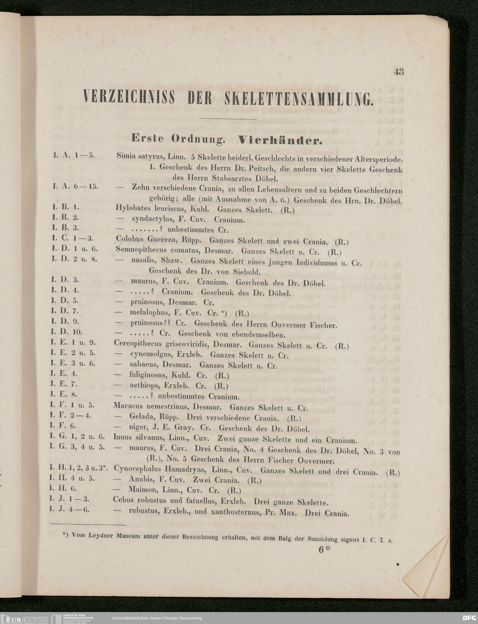 V176 Senckenberg Gesellschaft für Naturforschung, 485 - Eduard Rüppell, "Verzeichnis der in dem Museum der Senckenbergischen Naturforschenden Gesellschaft aufgestellten Sammlungen"