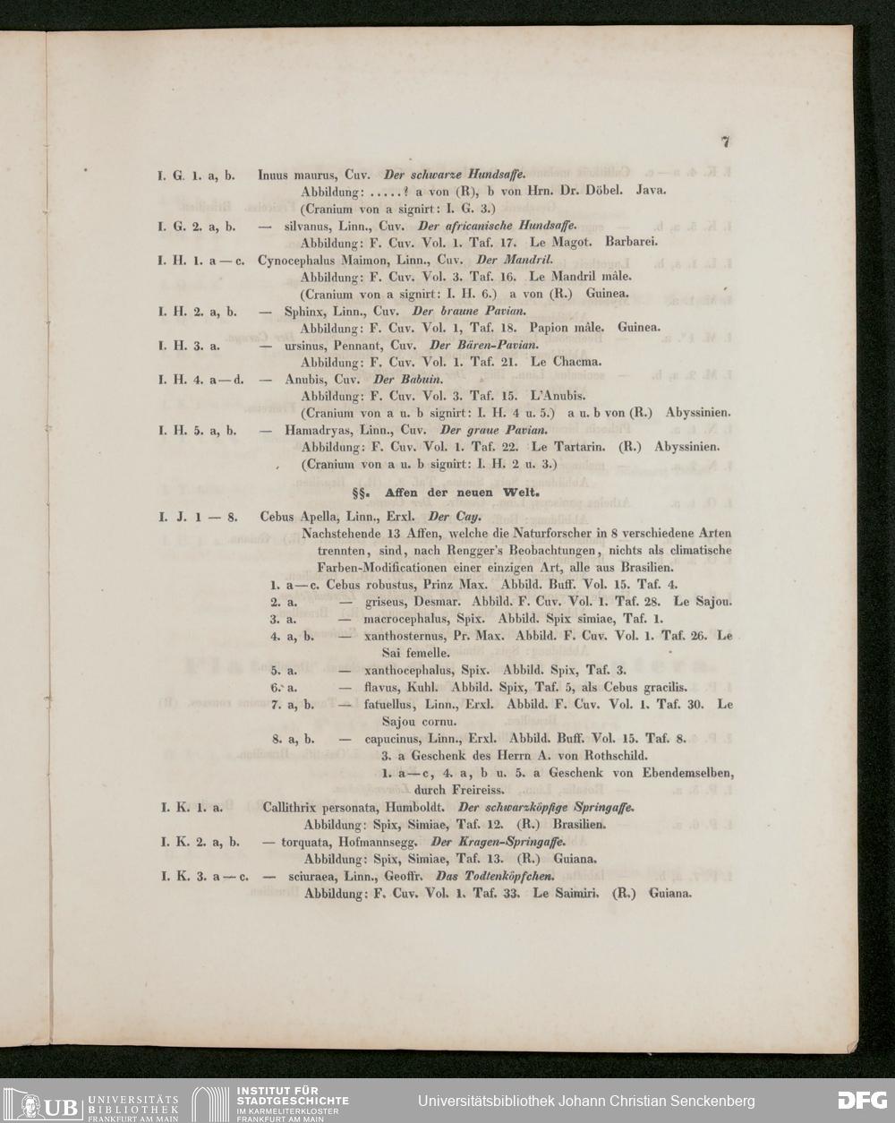 V176 Senckenberg Gesellschaft für Naturforschung, 486 - Eduard Rüppell, "Verzeichnis der in dem Museum der Senckenbergischen Naturforschenden Gesellschaft aufgestellten Sammlungen. Erste Abtheilung: Säugethiere und deren Skelette", Frankfurt a. M. 1842