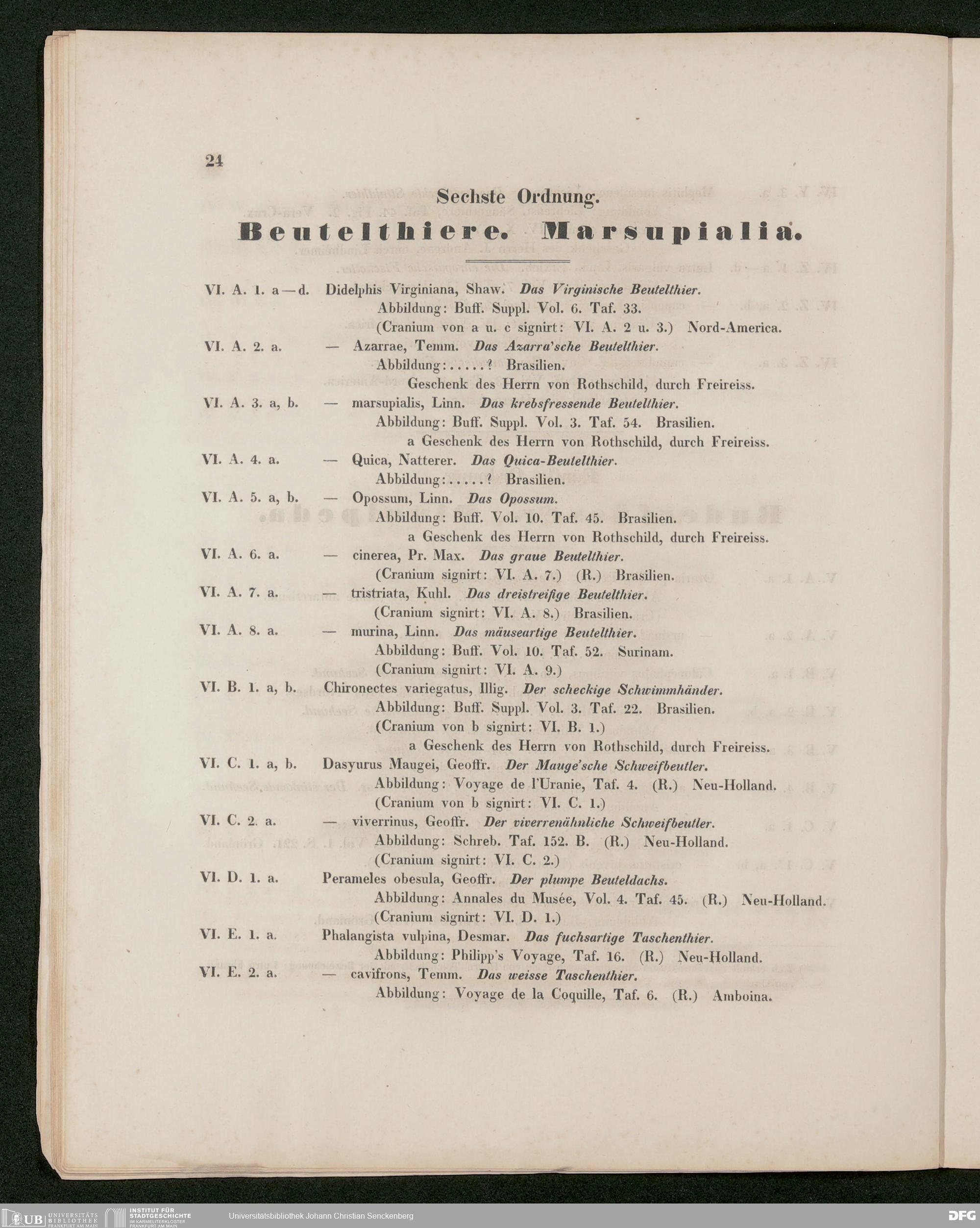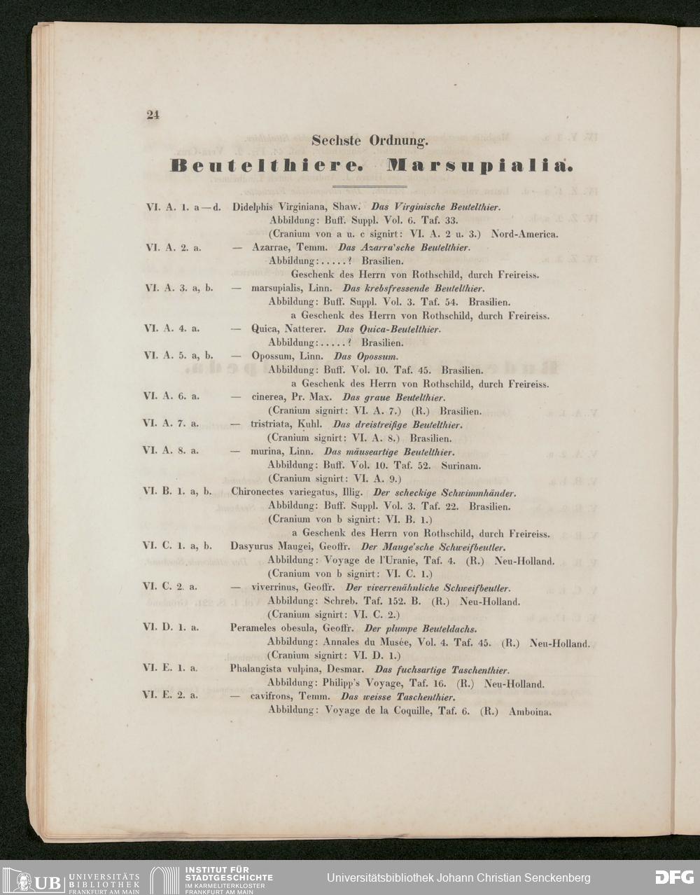 V176 Senckenberg Gesellschaft für Naturforschung, 486 - Eduard Rüppell, "Verzeichnis der in dem Museum der Senckenbergischen Naturforschenden Gesellschaft aufgestellten Sammlungen. Erste Abtheilung: Säugethiere und deren Skelette", Frankfurt a. M. 1842
