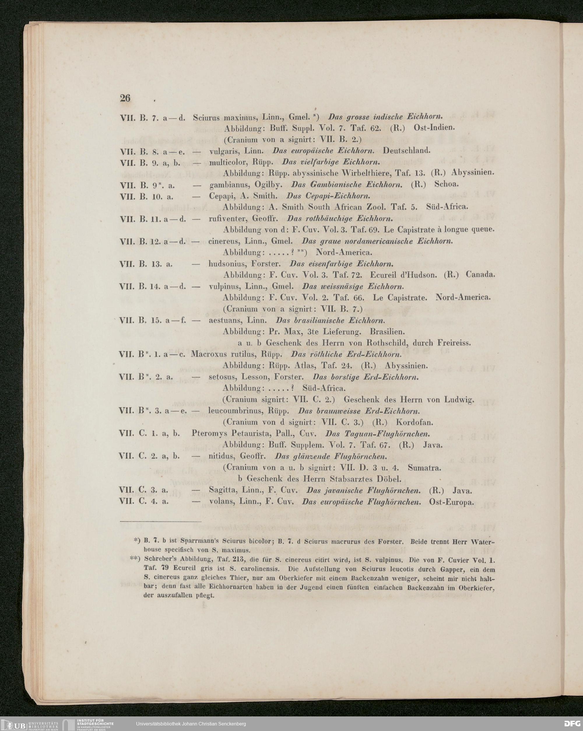 V176 Senckenberg Gesellschaft für Naturforschung, 486 - Eduard Rüppell, "Verzeichnis der in dem Museum der Senckenbergischen Naturforschenden Gesellschaft aufgestellten Sammlungen. Erste Abtheilung: Säugethiere und deren Skelette", Frankfurt a. M. 1842