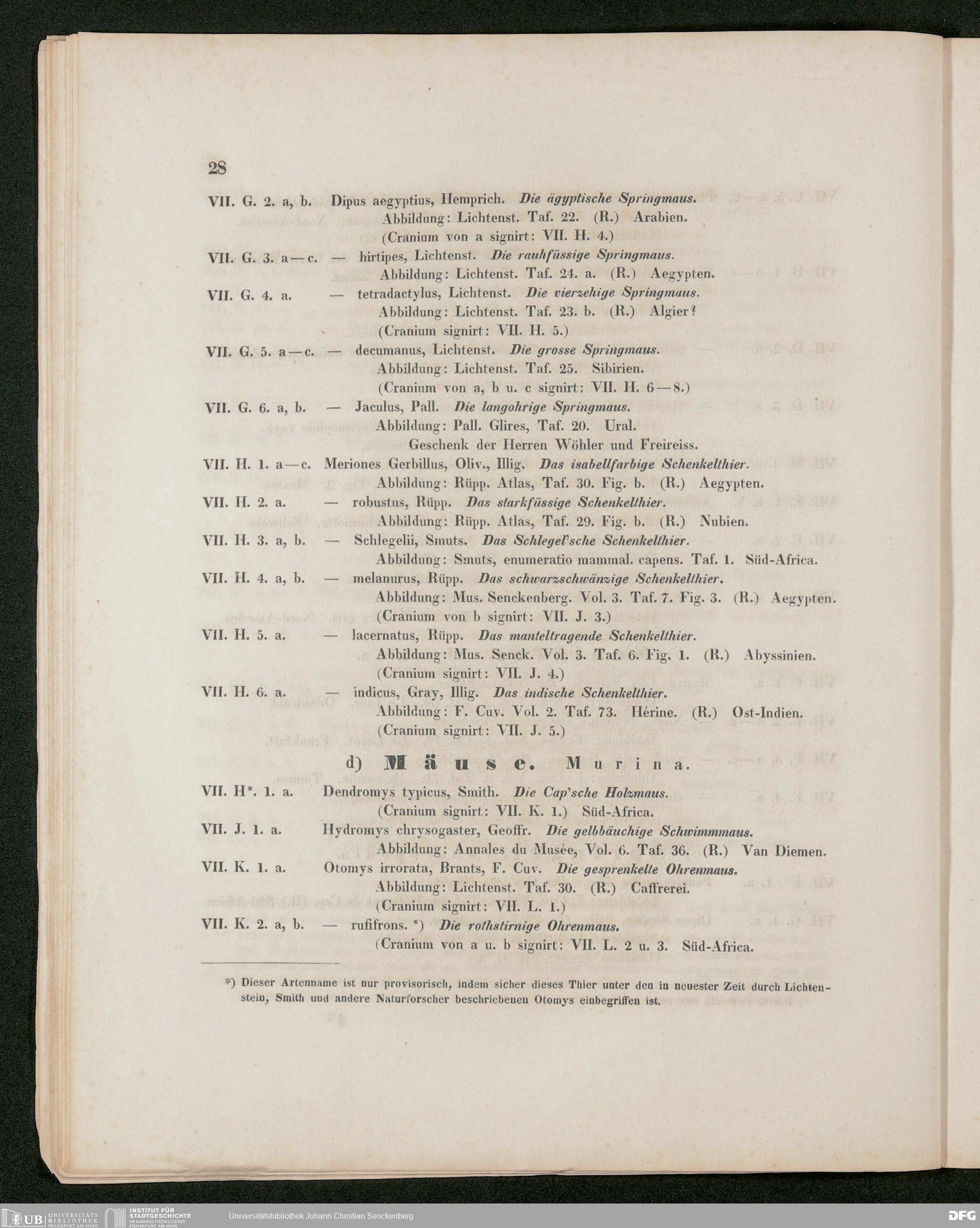 V176 Senckenberg Gesellschaft für Naturforschung, 486 - Eduard Rüppell, "Verzeichnis der in dem Museum der Senckenbergischen Naturforschenden Gesellschaft aufgestellten Sammlungen. Erste Abtheilung: Säugethiere und deren Skelette", Frankfurt a. M. 1842
