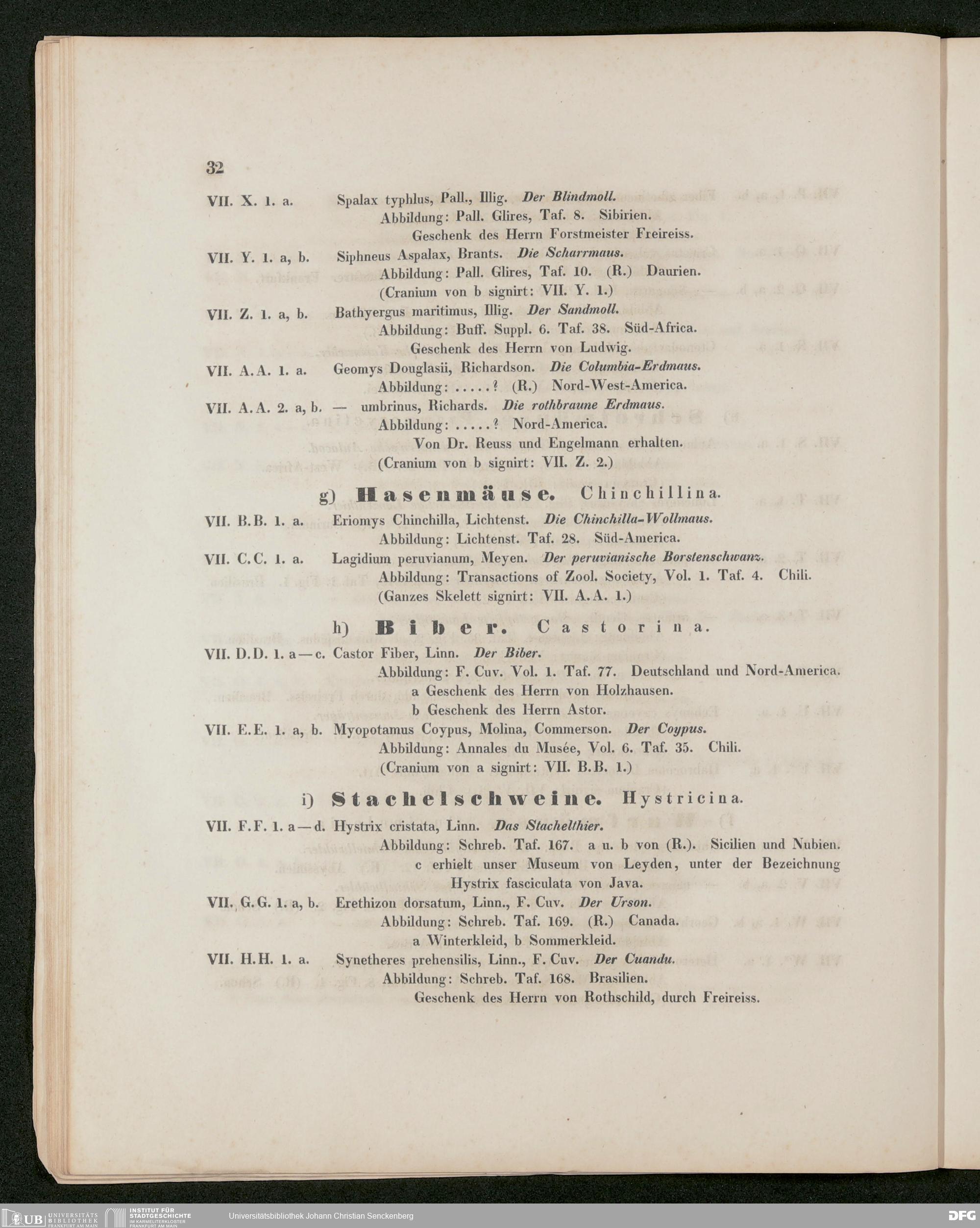 V176 Senckenberg Gesellschaft für Naturforschung, 486 - Eduard Rüppell, "Verzeichnis der in dem Museum der Senckenbergischen Naturforschenden Gesellschaft aufgestellten Sammlungen. Erste Abtheilung: Säugethiere und deren Skelette", Frankfurt a. M. 1842