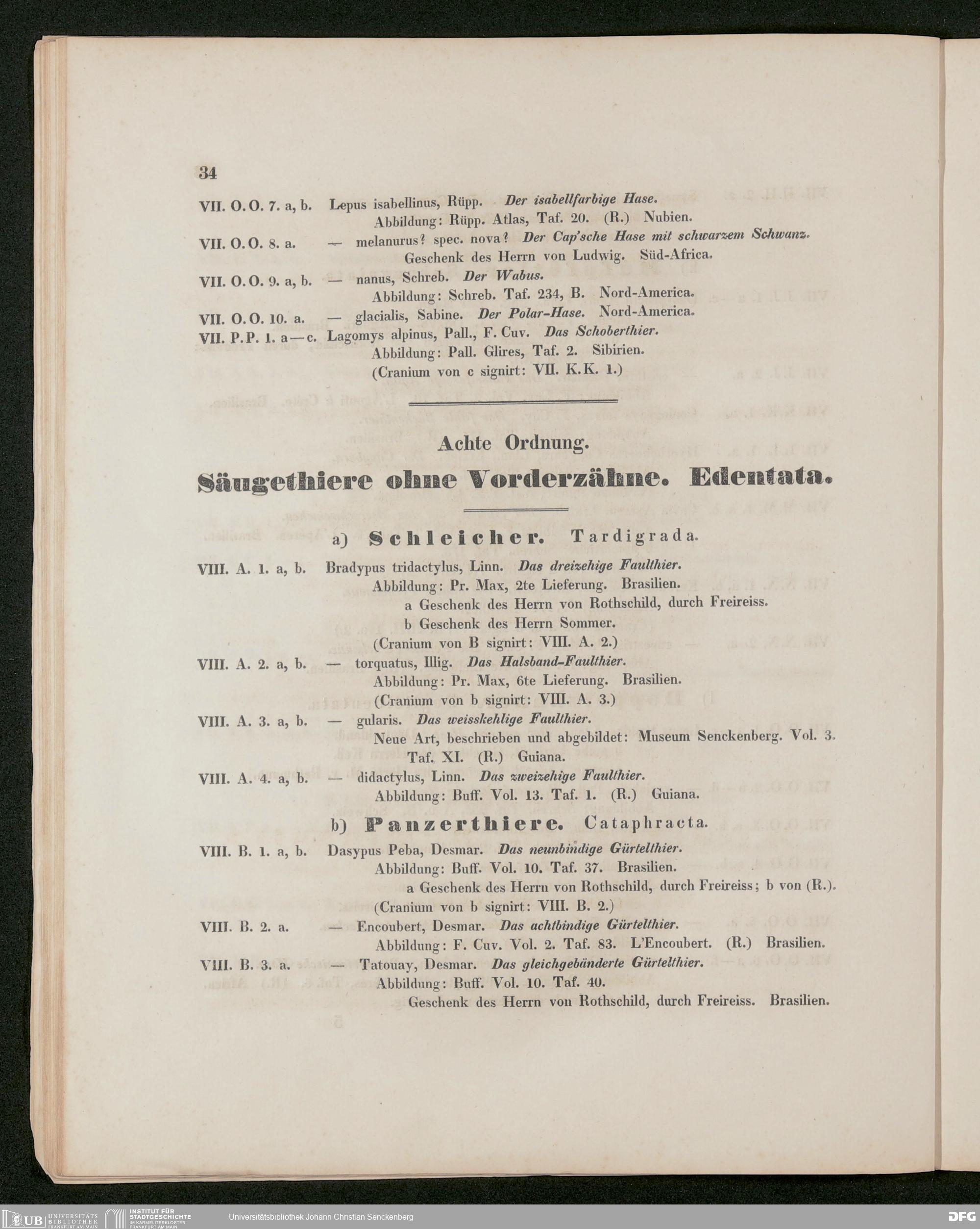 V176 Senckenberg Gesellschaft für Naturforschung, 486 - Eduard Rüppell, "Verzeichnis der in dem Museum der Senckenbergischen Naturforschenden Gesellschaft aufgestellten Sammlungen. Erste Abtheilung: Säugethiere und deren Skelette", Frankfurt a. M. 1842