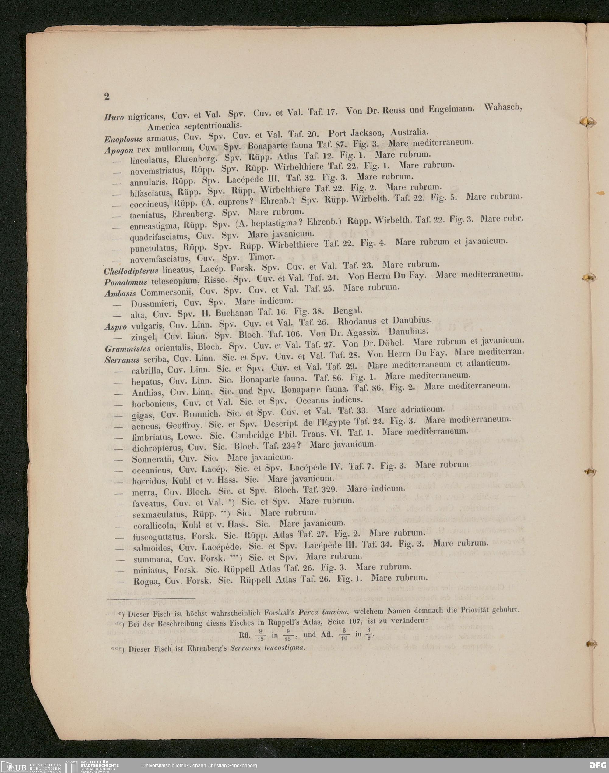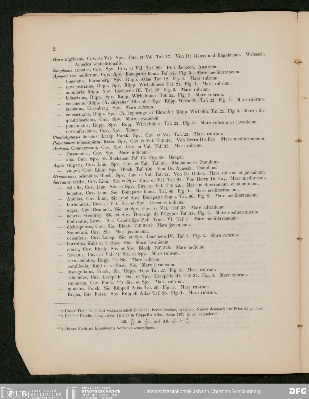 V176 Senckenberg Gesellschaft für Naturforschung, 487 - Eduard Rüppell, "Verzeichnis der in dem Museum der Senckenbergischen Naturforschenden Gesellschaft aufgestellten Sammlungen. Vierte Abtheilung: Fische und deren Skelette", Frankfurt 1852