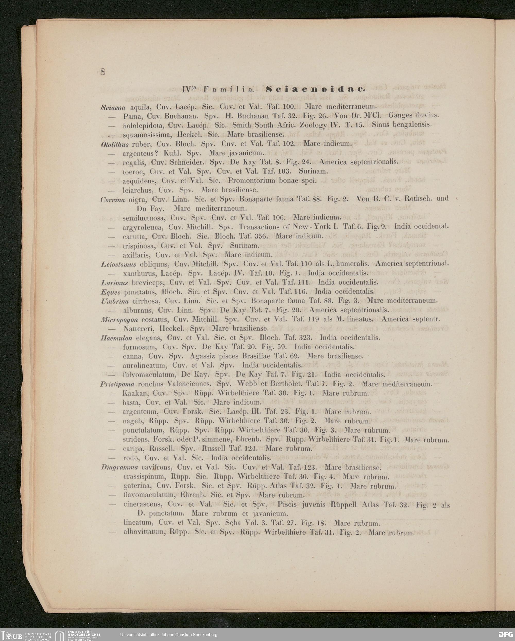 V176 Senckenberg Gesellschaft für Naturforschung, 487 - Eduard Rüppell, "Verzeichnis der in dem Museum der Senckenbergischen Naturforschenden Gesellschaft aufgestellten Sammlungen. Vierte Abtheilung: Fische und deren Skelette", Frankfurt 1852