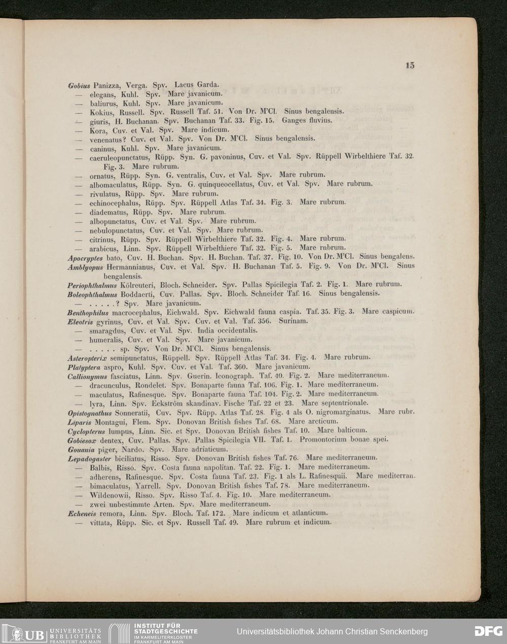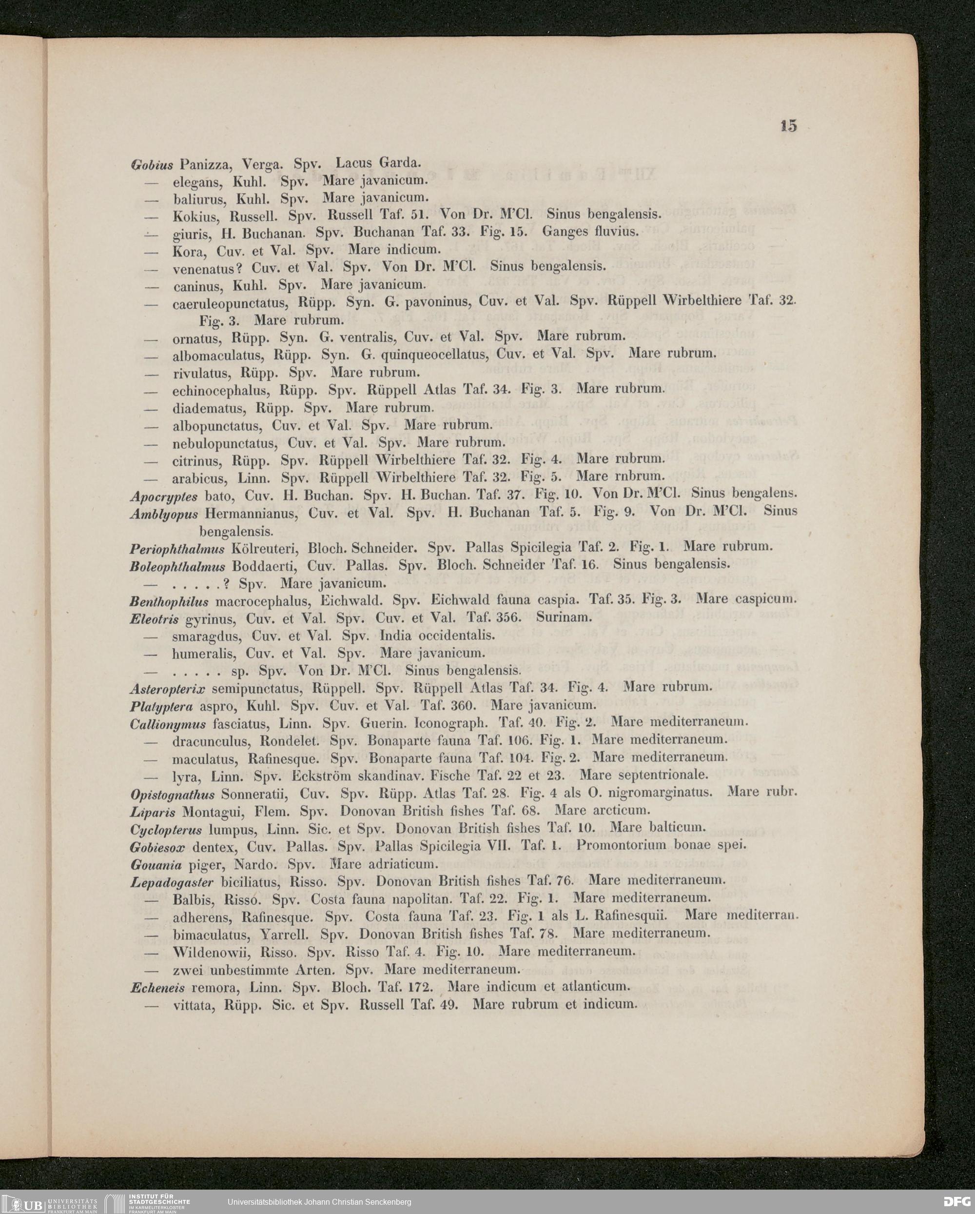 V176 Senckenberg Gesellschaft für Naturforschung, 487 - Eduard Rüppell, "Verzeichnis der in dem Museum der Senckenbergischen Naturforschenden Gesellschaft aufgestellten Sammlungen. Vierte Abtheilung: Fische und deren Skelette", Frankfurt 1852