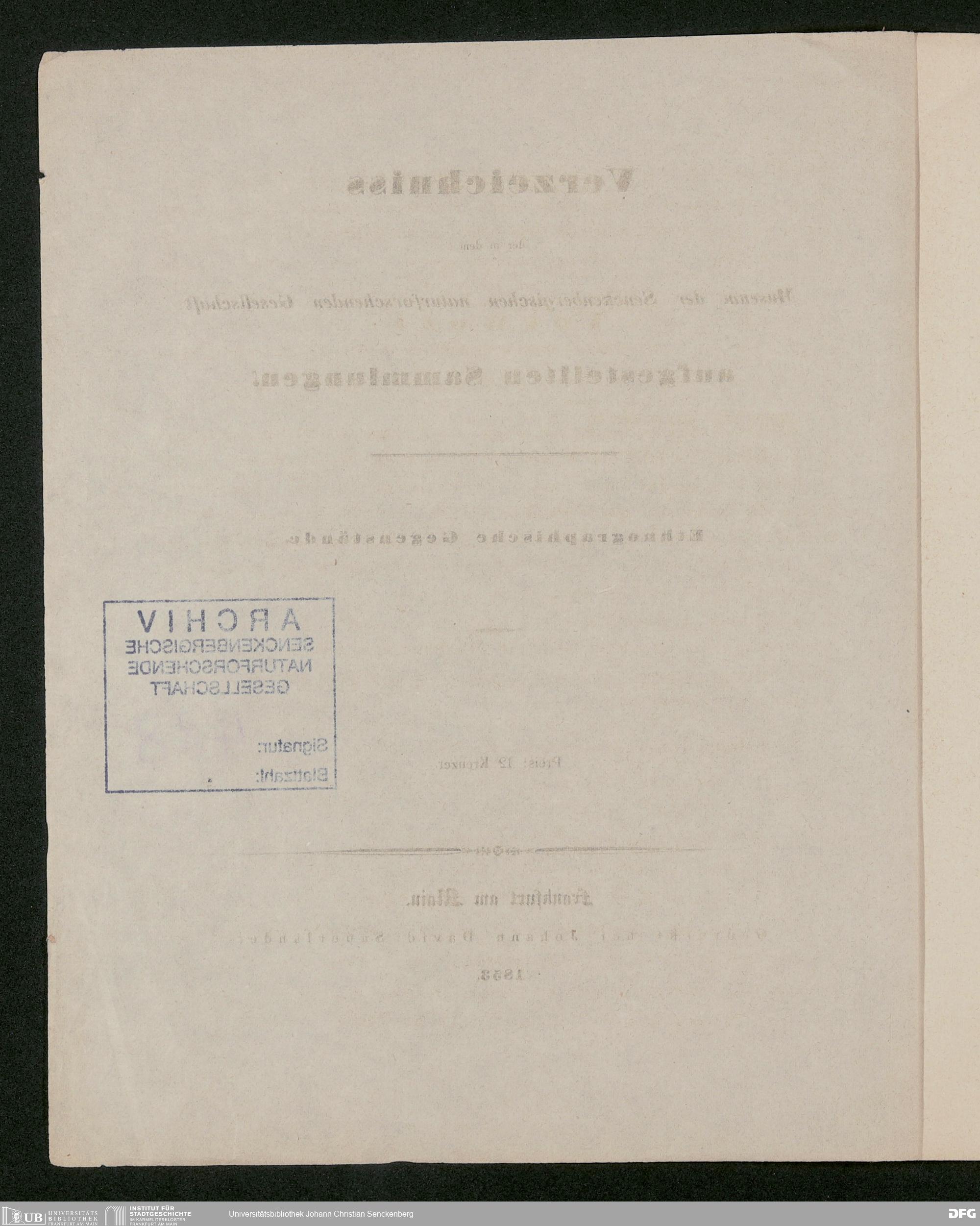 V176 Senckenberg Gesellschaft für Naturforschung, 488 - Georg Ludwig Kriegk, "Verzeichnis der in dem Museum der Senckenbergischen Naturforschenden Gesellschaft aufgestellten Sammlungen. Ethnographische Gegenstände", Frankfurt a. M. 1853