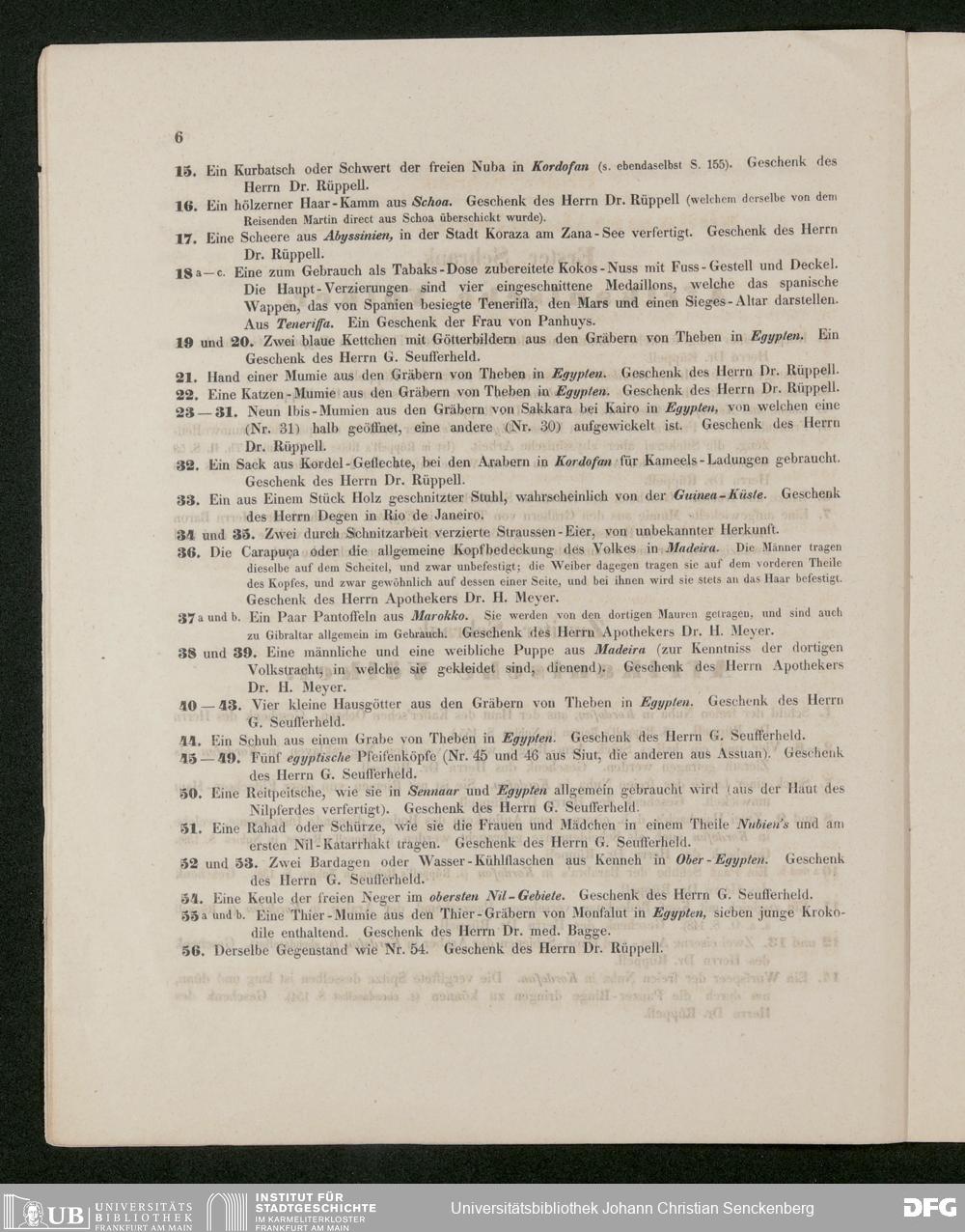 V176 Senckenberg Gesellschaft für Naturforschung, 488 - Georg Ludwig Kriegk, "Verzeichnis der in dem Museum der Senckenbergischen Naturforschenden Gesellschaft aufgestellten Sammlungen. Ethnographische Gegenstände", Frankfurt a. M. 1853