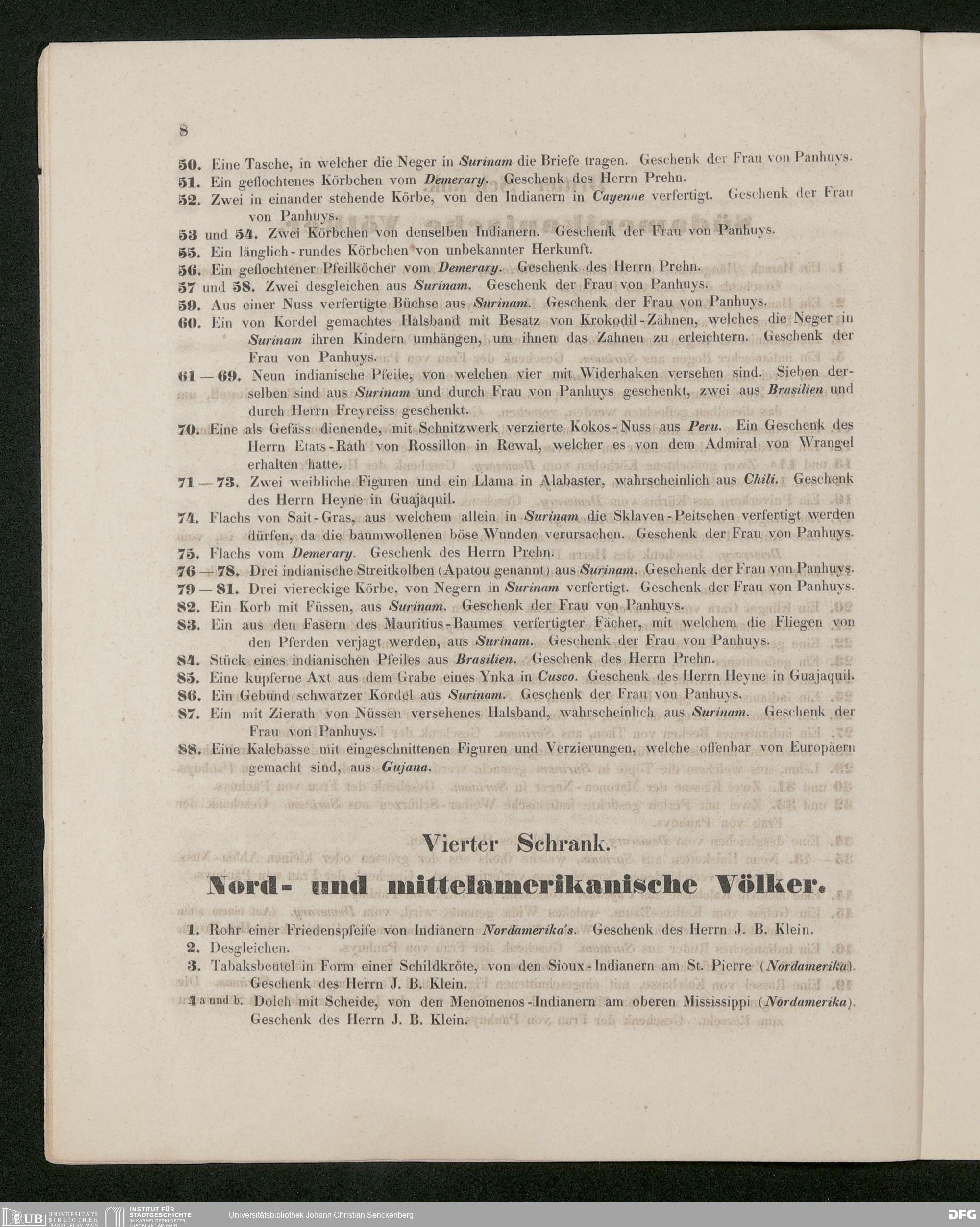 V176 Senckenberg Gesellschaft für Naturforschung, 488 - Georg Ludwig Kriegk, "Verzeichnis der in dem Museum der Senckenbergischen Naturforschenden Gesellschaft aufgestellten Sammlungen. Ethnographische Gegenstände", Frankfurt a. M. 1853