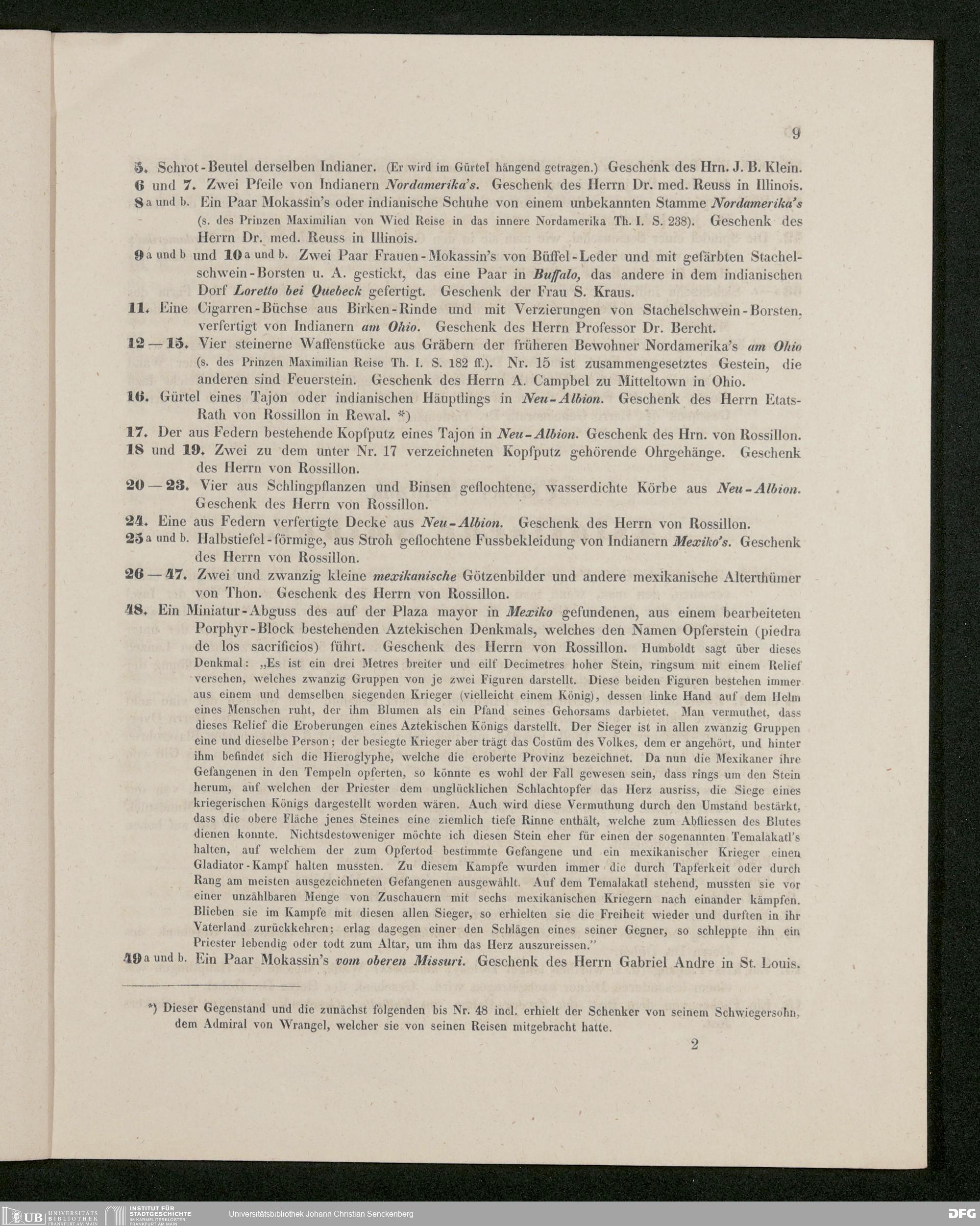 V176 Senckenberg Gesellschaft für Naturforschung, 488 - Georg Ludwig Kriegk, "Verzeichnis der in dem Museum der Senckenbergischen Naturforschenden Gesellschaft aufgestellten Sammlungen. Ethnographische Gegenstände", Frankfurt a. M. 1853