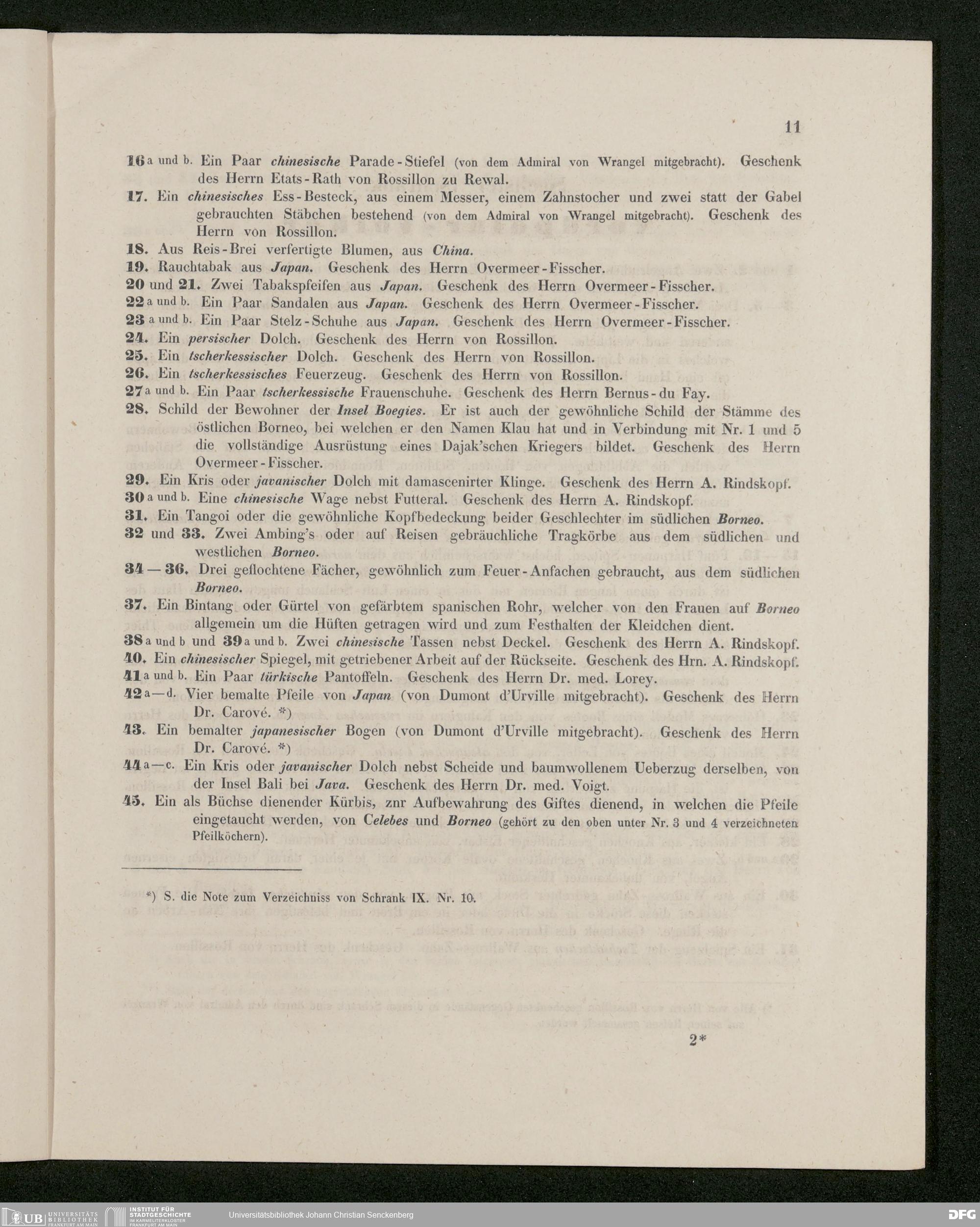 V176 Senckenberg Gesellschaft für Naturforschung, 488 - Georg Ludwig Kriegk, "Verzeichnis der in dem Museum der Senckenbergischen Naturforschenden Gesellschaft aufgestellten Sammlungen. Ethnographische Gegenstände", Frankfurt a. M. 1853