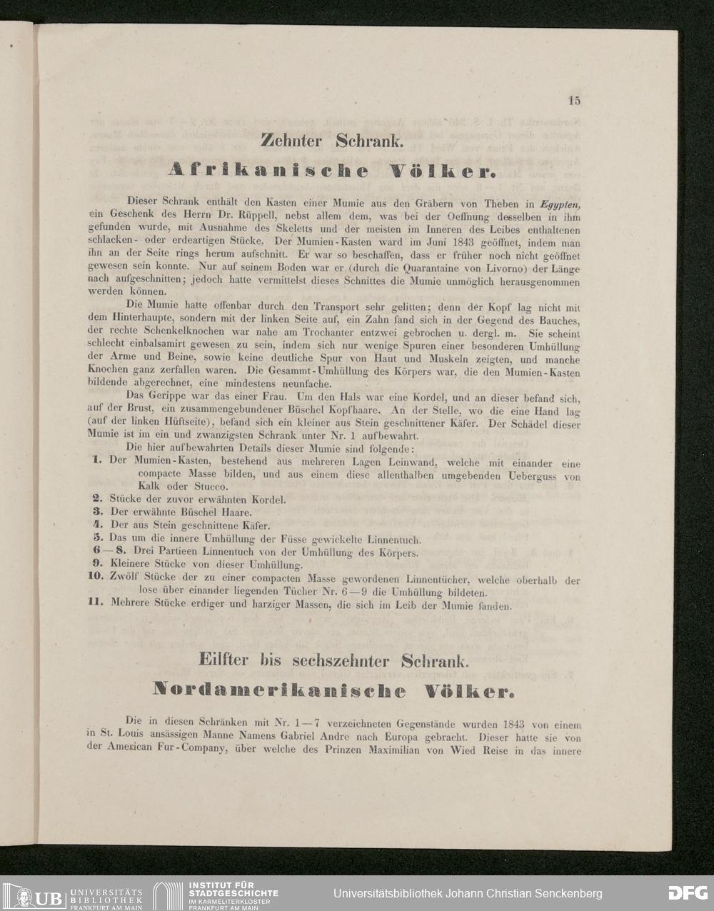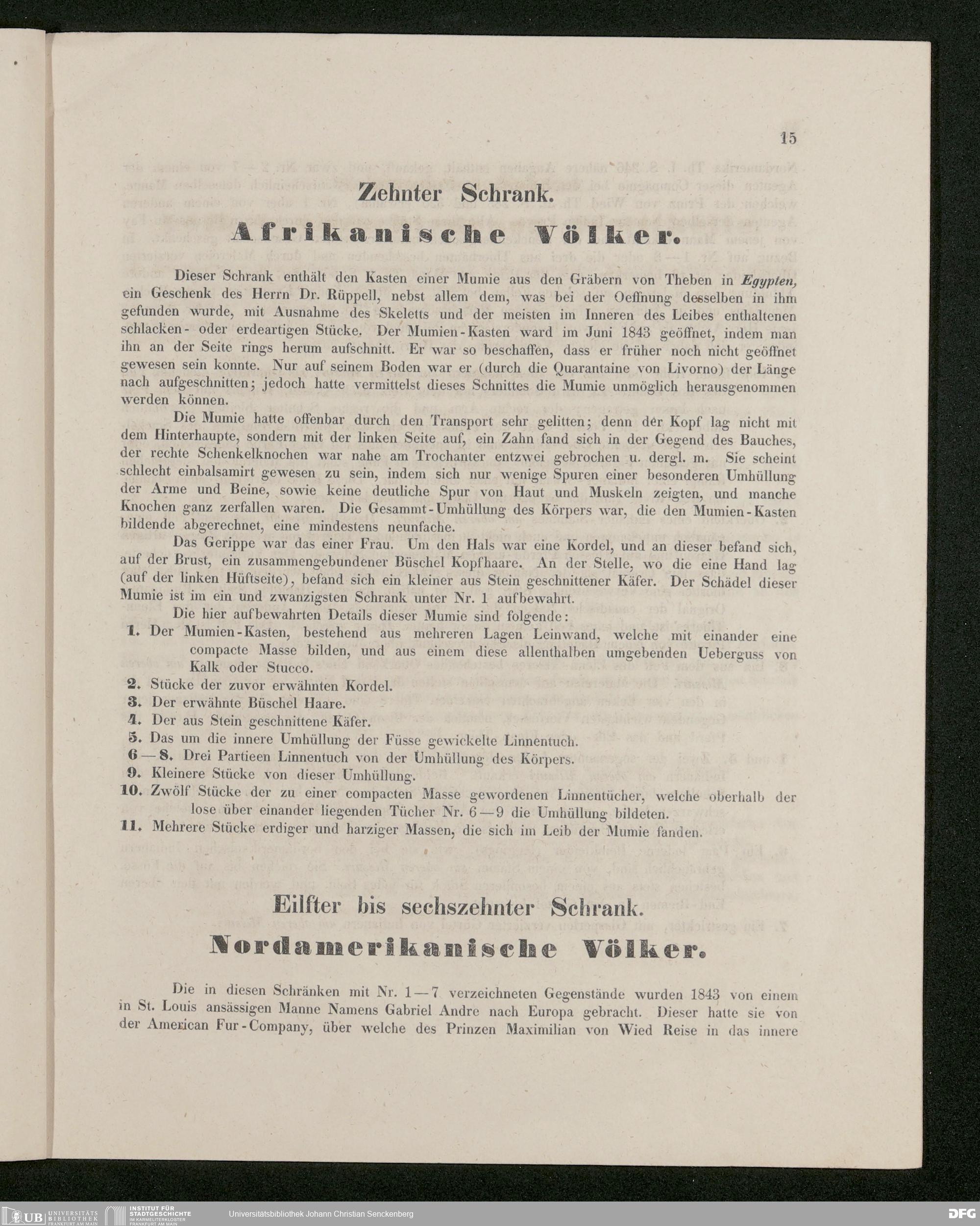 V176 Senckenberg Gesellschaft für Naturforschung, 488 - Georg Ludwig Kriegk, "Verzeichnis der in dem Museum der Senckenbergischen Naturforschenden Gesellschaft aufgestellten Sammlungen. Ethnographische Gegenstände", Frankfurt a. M. 1853