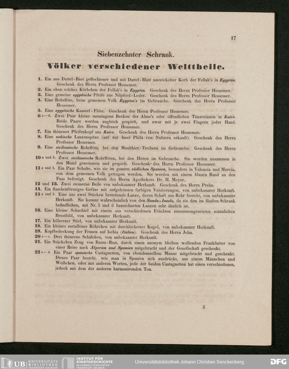 V176 Senckenberg Gesellschaft für Naturforschung, 488 - Georg Ludwig Kriegk, "Verzeichnis der in dem Museum der Senckenbergischen Naturforschenden Gesellschaft aufgestellten Sammlungen. Ethnographische Gegenstände", Frankfurt a. M. 1853