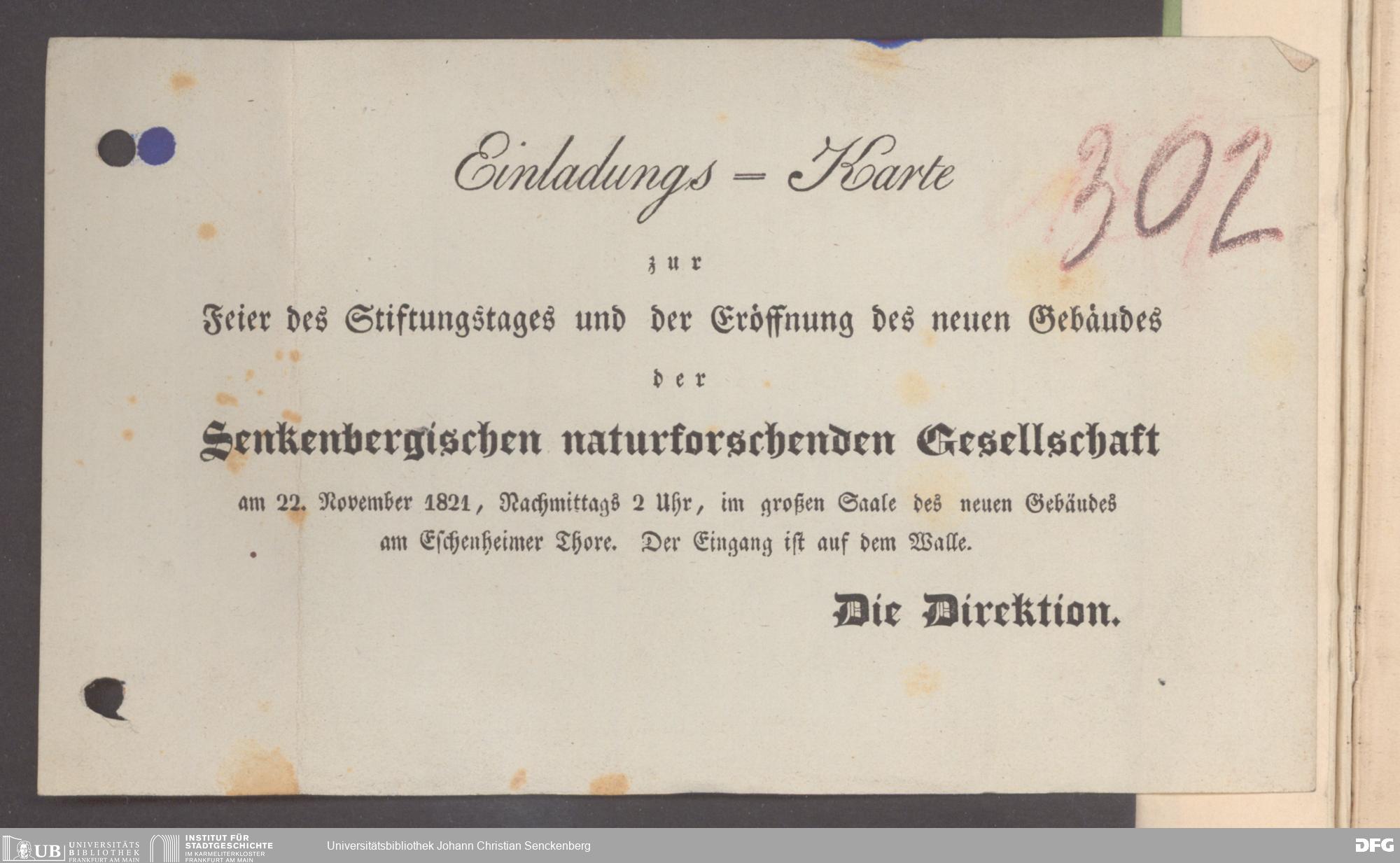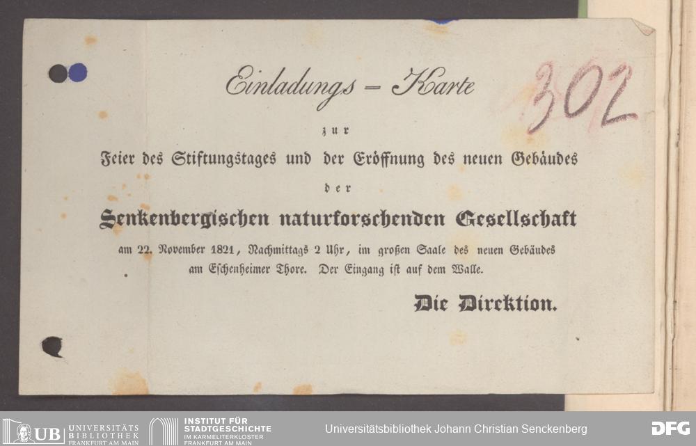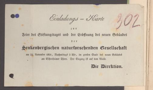 V176 Senckenberg Gesellschaft für Naturforschung, 497 - Eintrittskarten, Lieder- und Programmhefte sowie Speisekarten von Jahresfeiern, Doktorjubiläen und der Feier zur Eröffnung des Museums