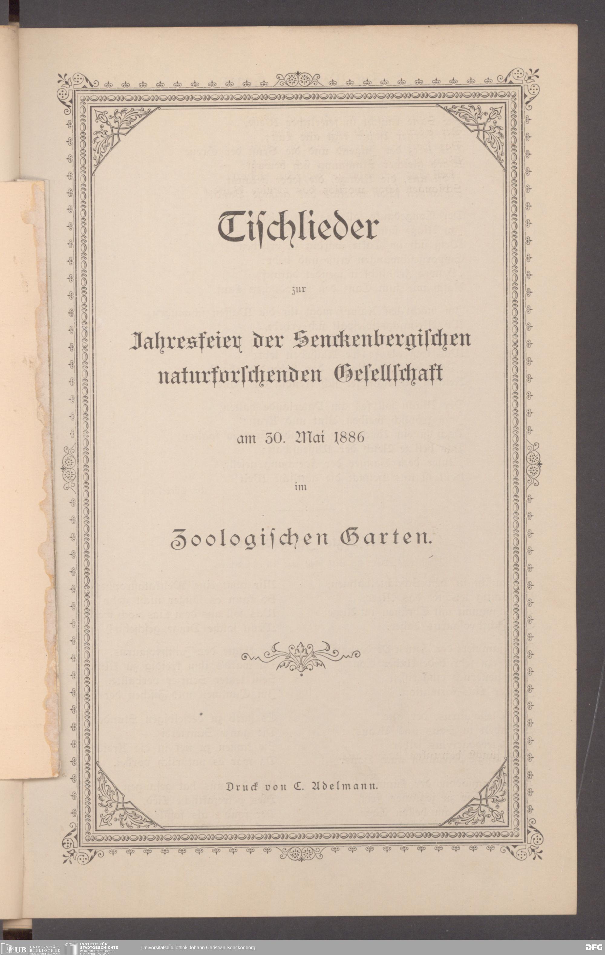 V176 Senckenberg Gesellschaft für Naturforschung, 497 - Eintrittskarten, Lieder- und Programmhefte sowie Speisekarten von Jahresfeiern, Doktorjubiläen und der Feier zur Eröffnung des Museums
