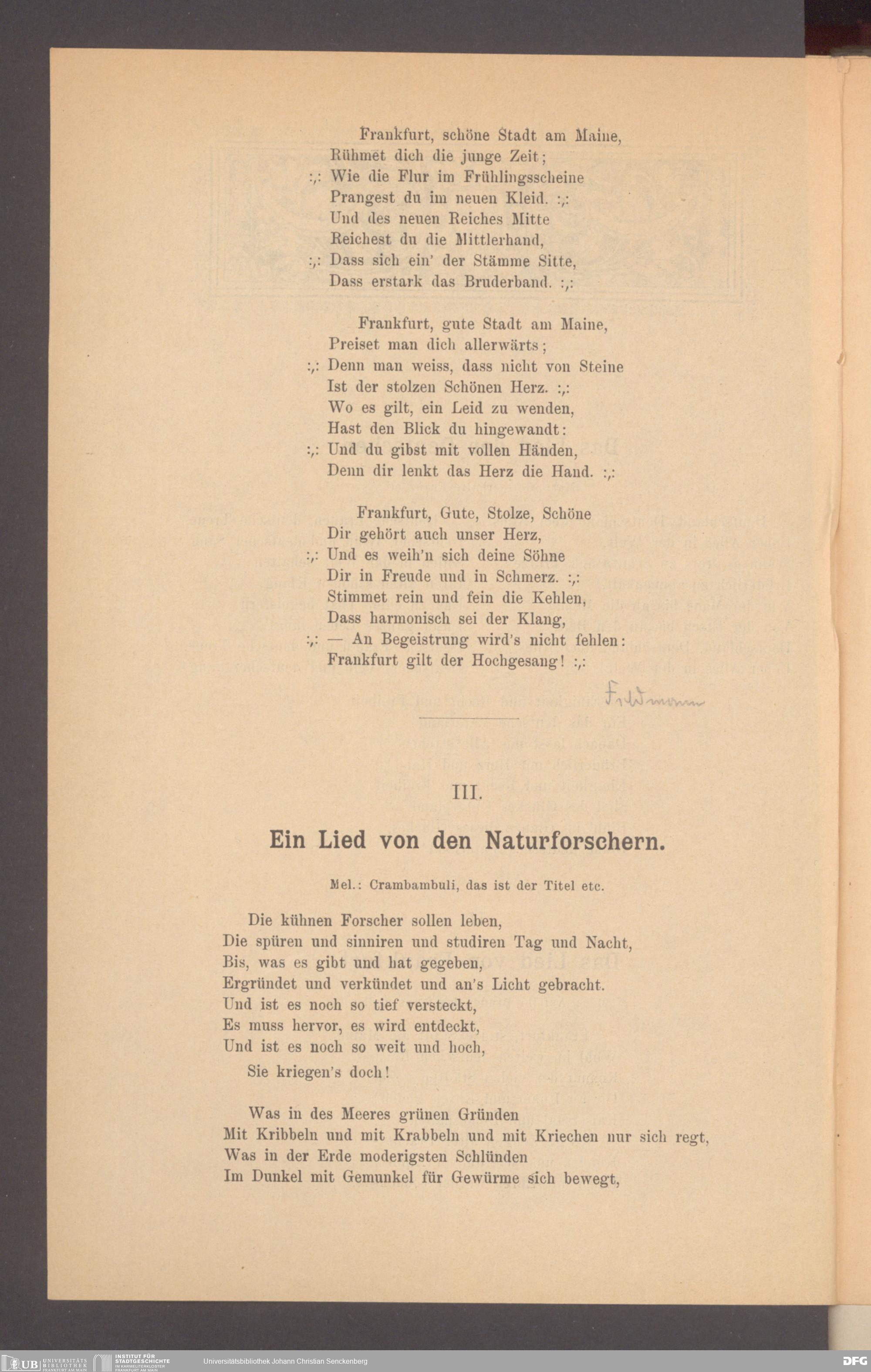 V176 Senckenberg Gesellschaft für Naturforschung, 497 - Eintrittskarten, Lieder- und Programmhefte sowie Speisekarten von Jahresfeiern, Doktorjubiläen und der Feier zur Eröffnung des Museums