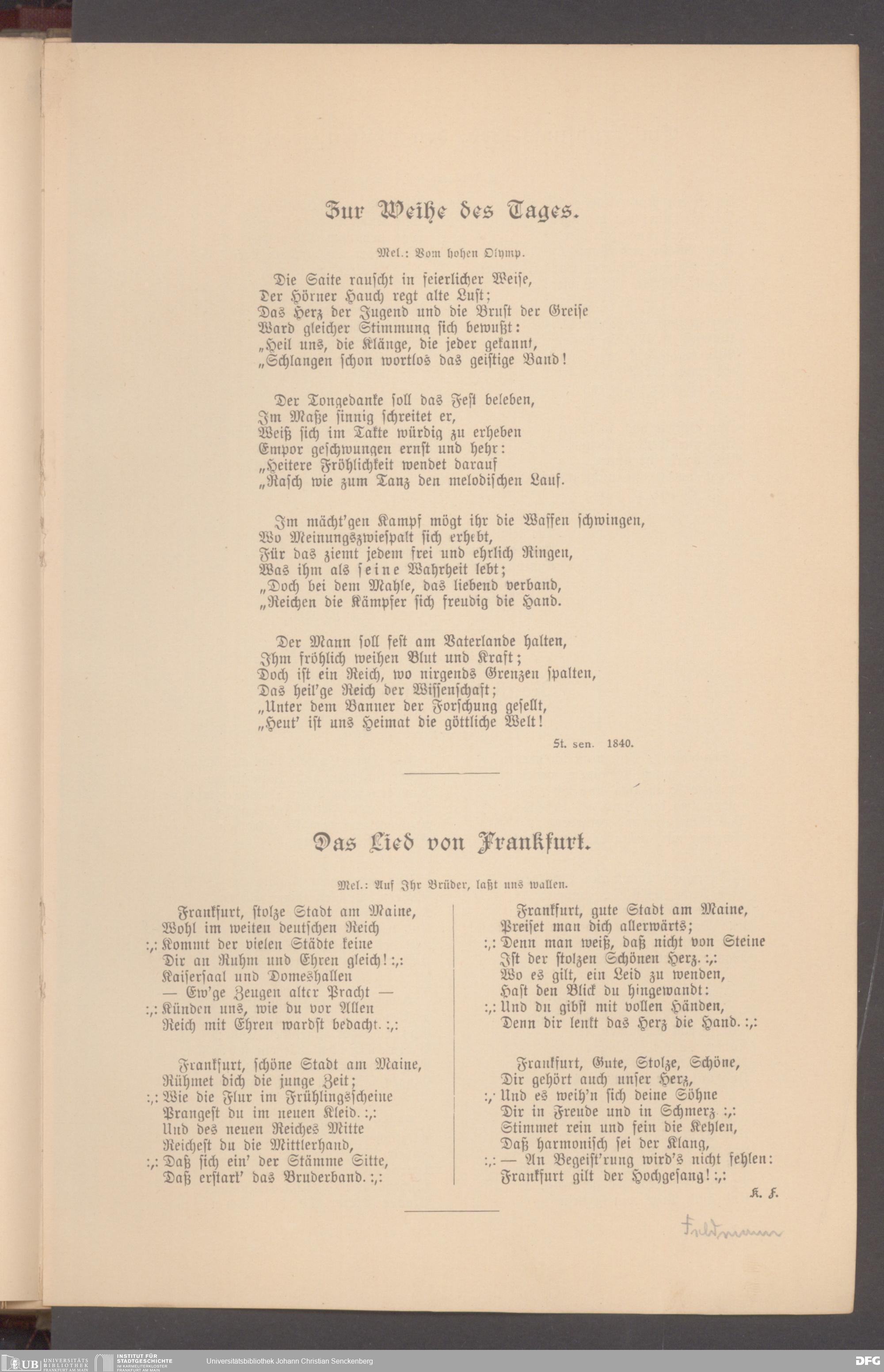 V176 Senckenberg Gesellschaft für Naturforschung, 497 - Eintrittskarten, Lieder- und Programmhefte sowie Speisekarten von Jahresfeiern, Doktorjubiläen und der Feier zur Eröffnung des Museums
