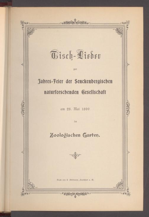V176 Senckenberg Gesellschaft für Naturforschung, 497 - Eintrittskarten, Lieder- und Programmhefte sowie Speisekarten von Jahresfeiern, Doktorjubiläen und der Feier zur Eröffnung des Museums