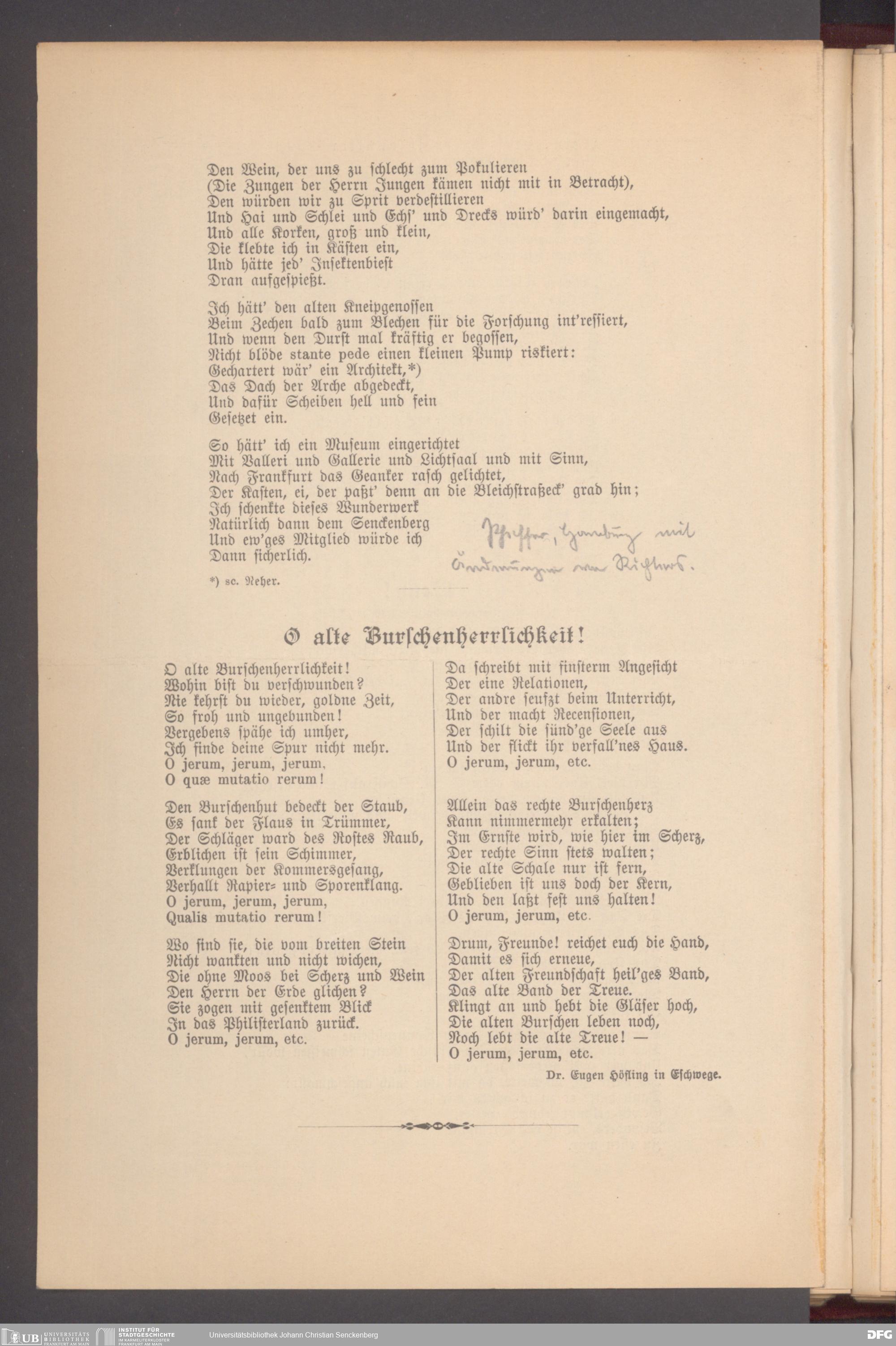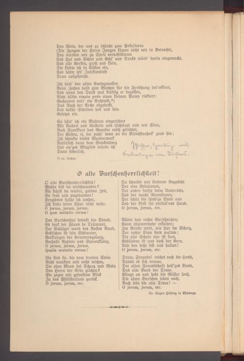 V176 Senckenberg Gesellschaft für Naturforschung, 497 - Eintrittskarten, Lieder- und Programmhefte sowie Speisekarten von Jahresfeiern, Doktorjubiläen und der Feier zur Eröffnung des Museums