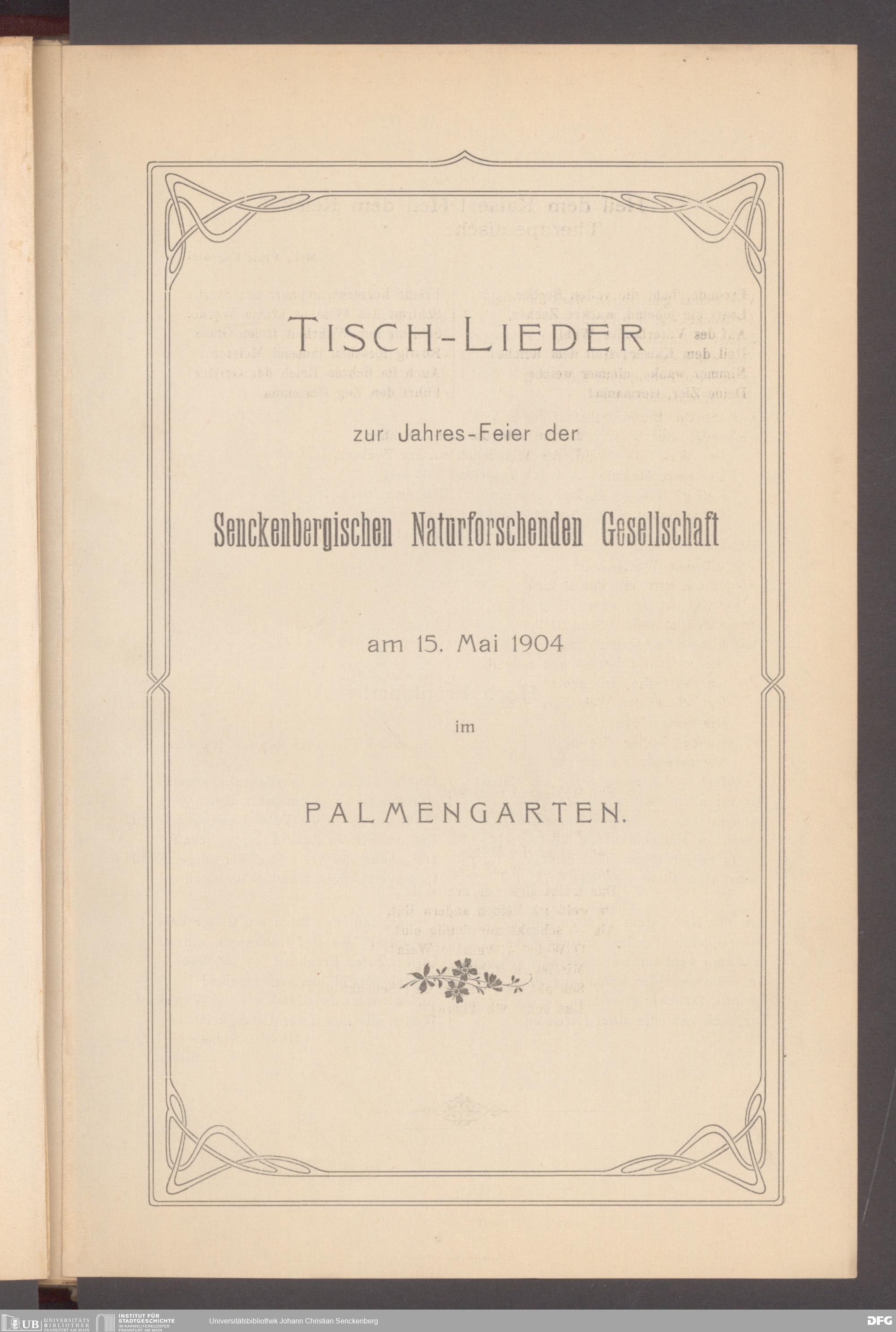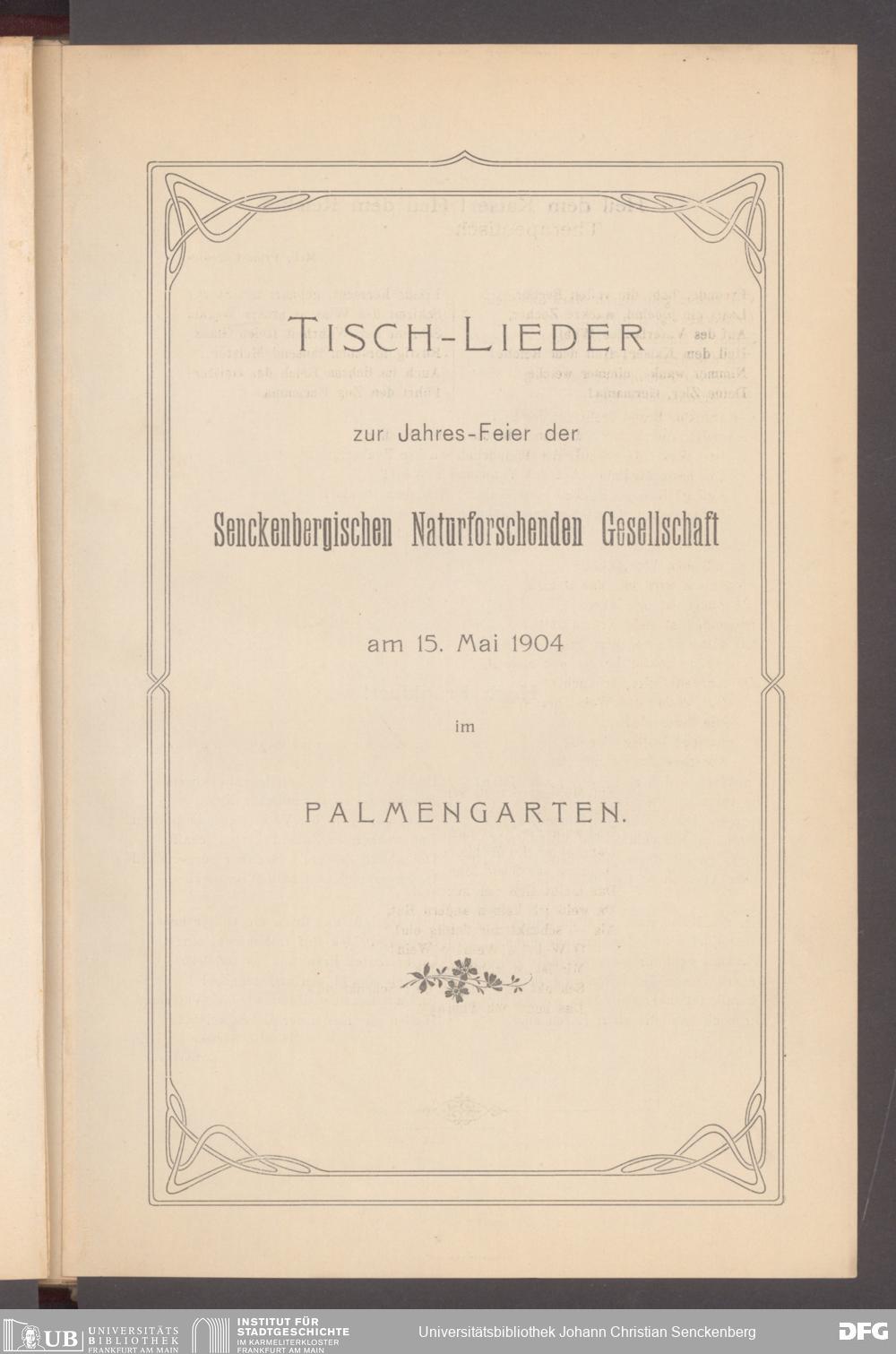 V176 Senckenberg Gesellschaft für Naturforschung, 497 - Eintrittskarten, Lieder- und Programmhefte sowie Speisekarten von Jahresfeiern, Doktorjubiläen und der Feier zur Eröffnung des Museums