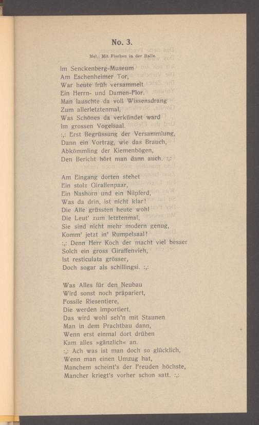 V176 Senckenberg Gesellschaft für Naturforschung, 497 - Eintrittskarten, Lieder- und Programmhefte sowie Speisekarten von Jahresfeiern, Doktorjubiläen und der Feier zur Eröffnung des Museums