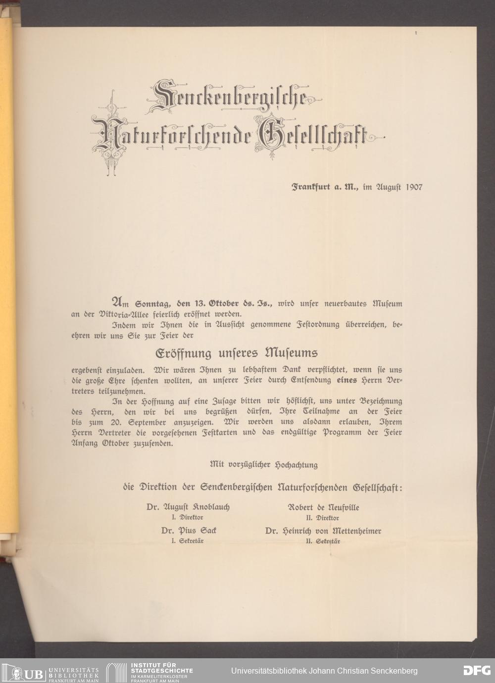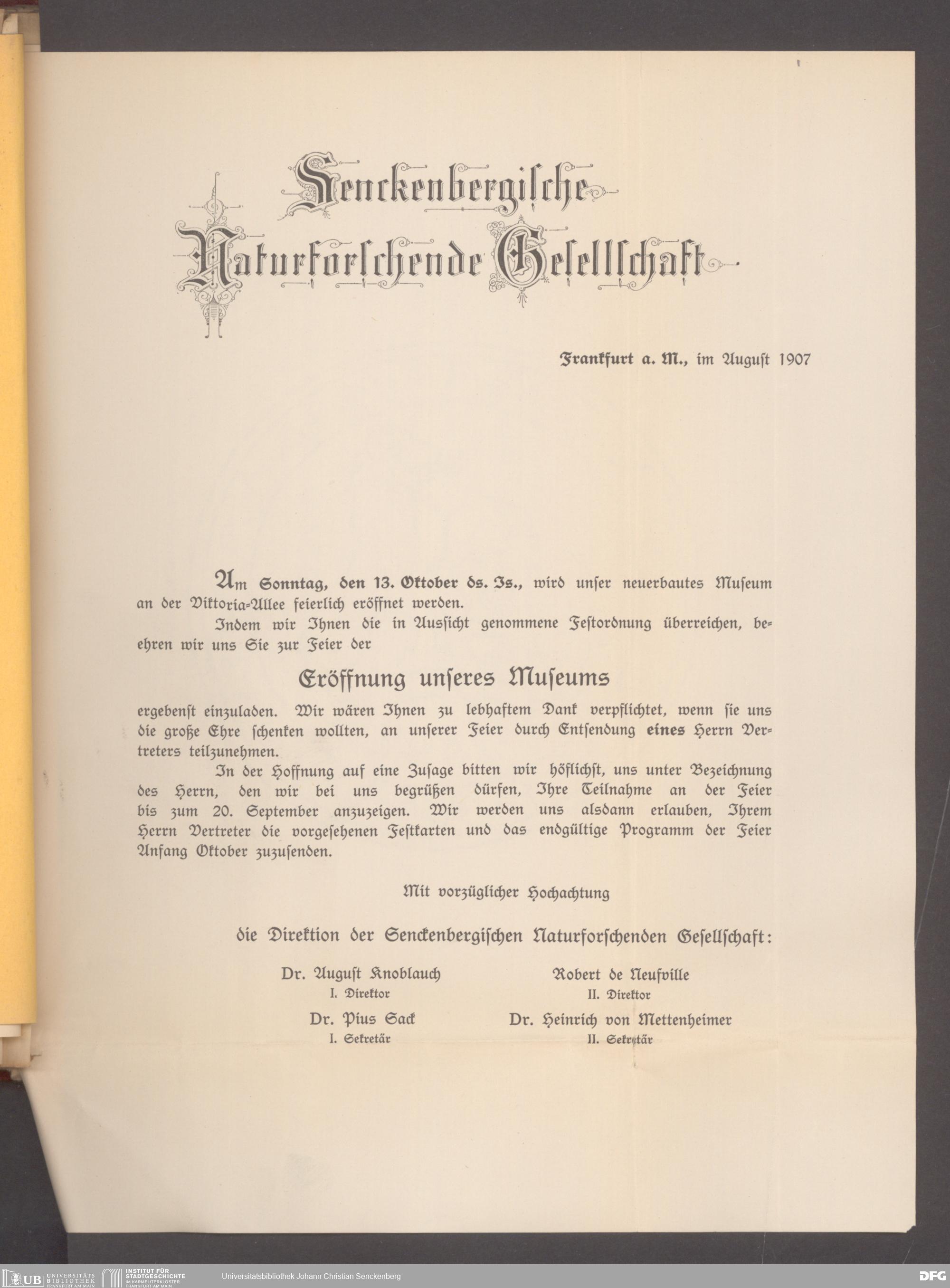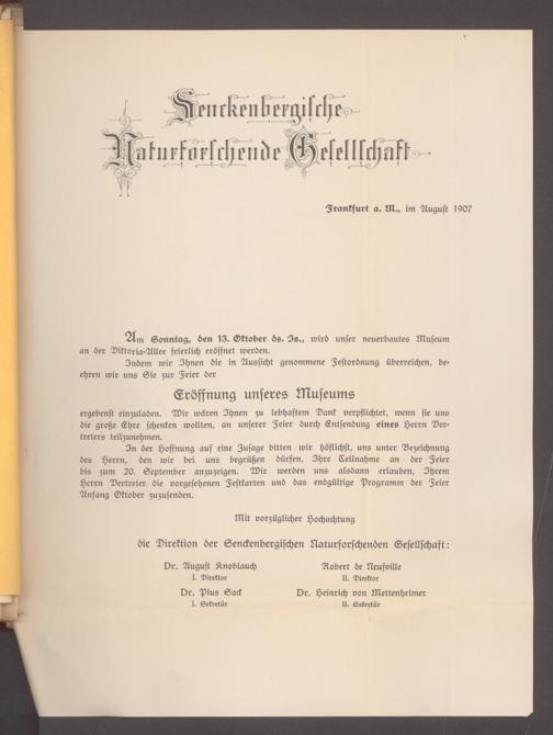 V176 Senckenberg Gesellschaft für Naturforschung, 497 - Eintrittskarten, Lieder- und Programmhefte sowie Speisekarten von Jahresfeiern, Doktorjubiläen und der Feier zur Eröffnung des Museums