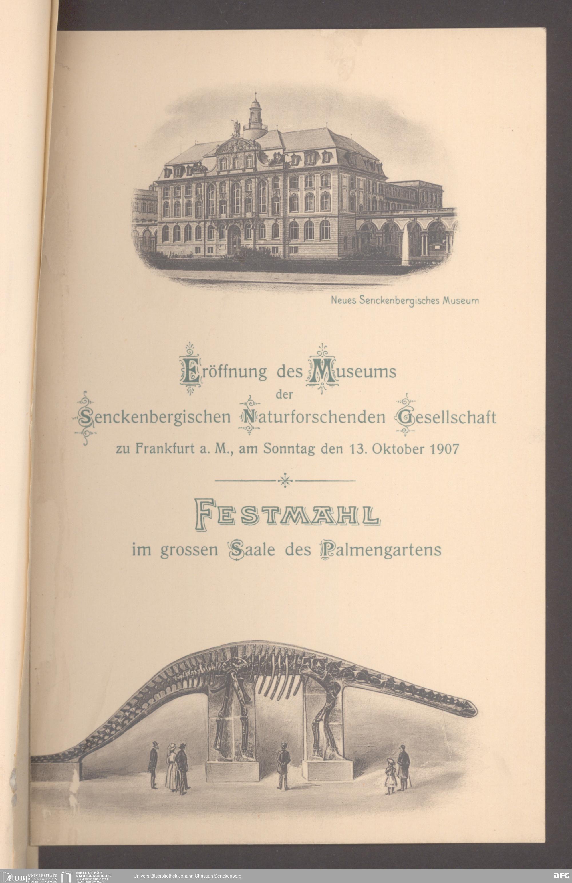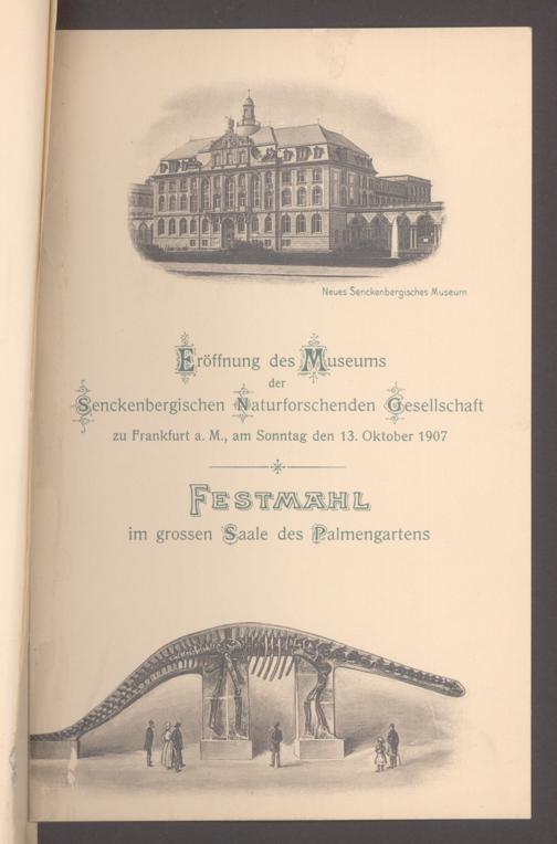V176 Senckenberg Gesellschaft für Naturforschung, 497 - Eintrittskarten, Lieder- und Programmhefte sowie Speisekarten von Jahresfeiern, Doktorjubiläen und der Feier zur Eröffnung des Museums