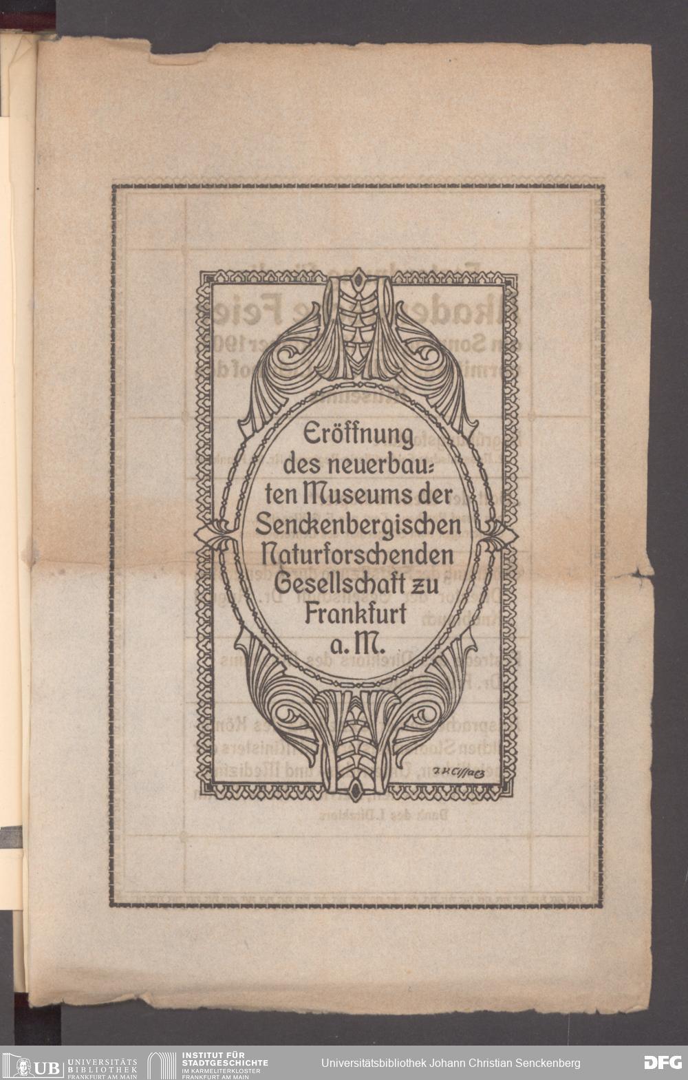 V176 Senckenberg Gesellschaft für Naturforschung, 497 - Eintrittskarten, Lieder- und Programmhefte sowie Speisekarten von Jahresfeiern, Doktorjubiläen und der Feier zur Eröffnung des Museums