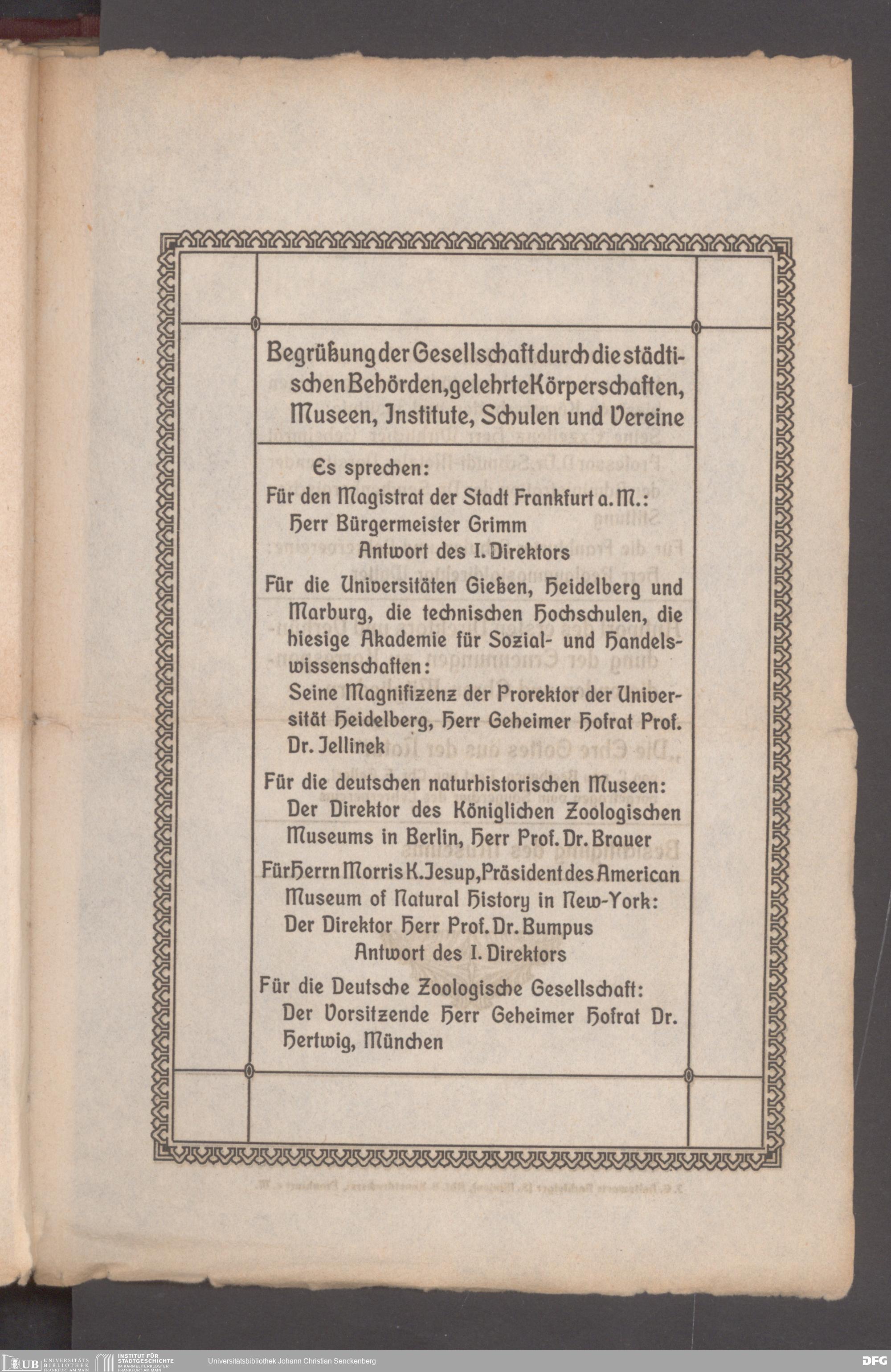 V176 Senckenberg Gesellschaft für Naturforschung, 497 - Eintrittskarten, Lieder- und Programmhefte sowie Speisekarten von Jahresfeiern, Doktorjubiläen und der Feier zur Eröffnung des Museums