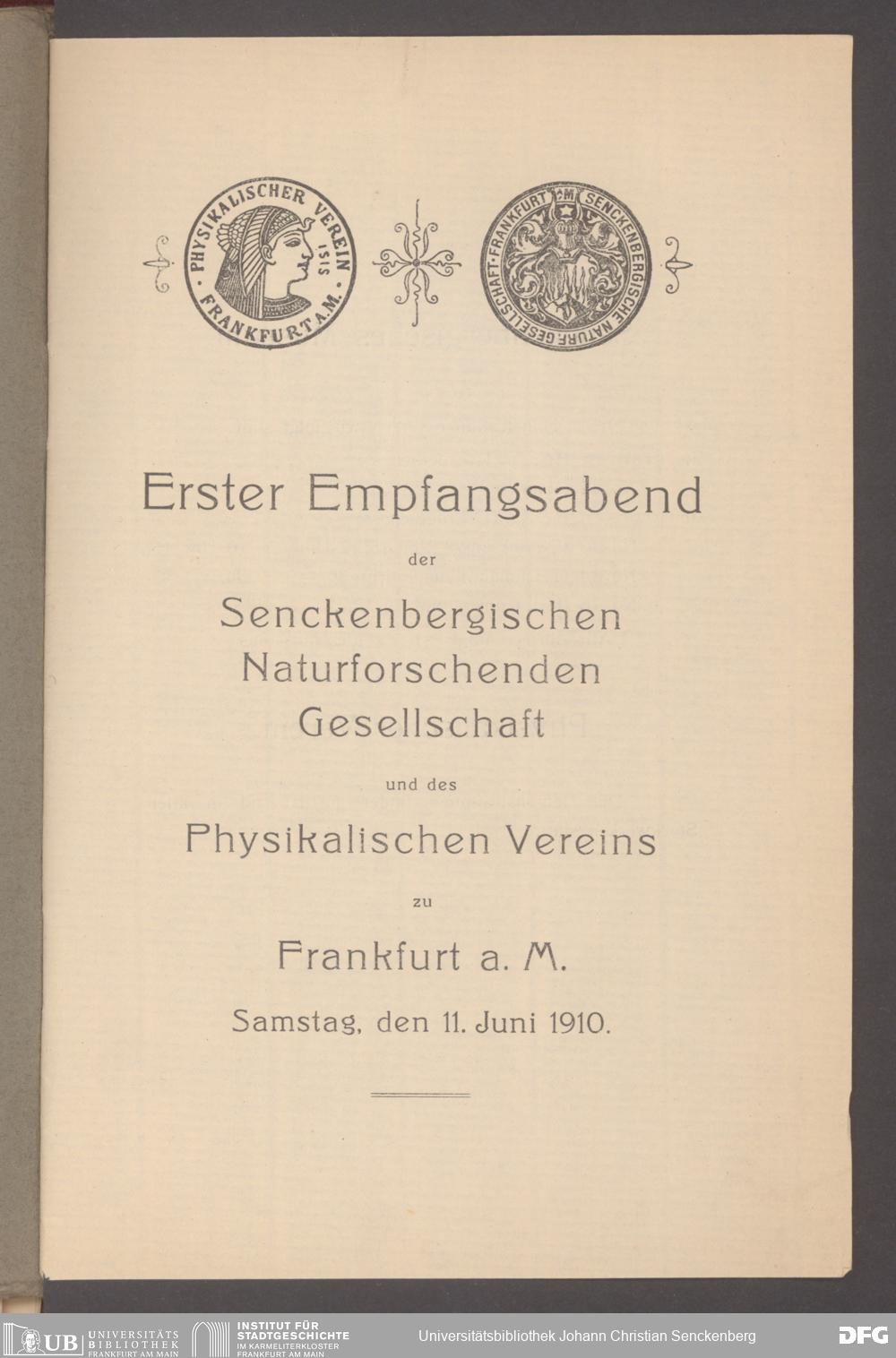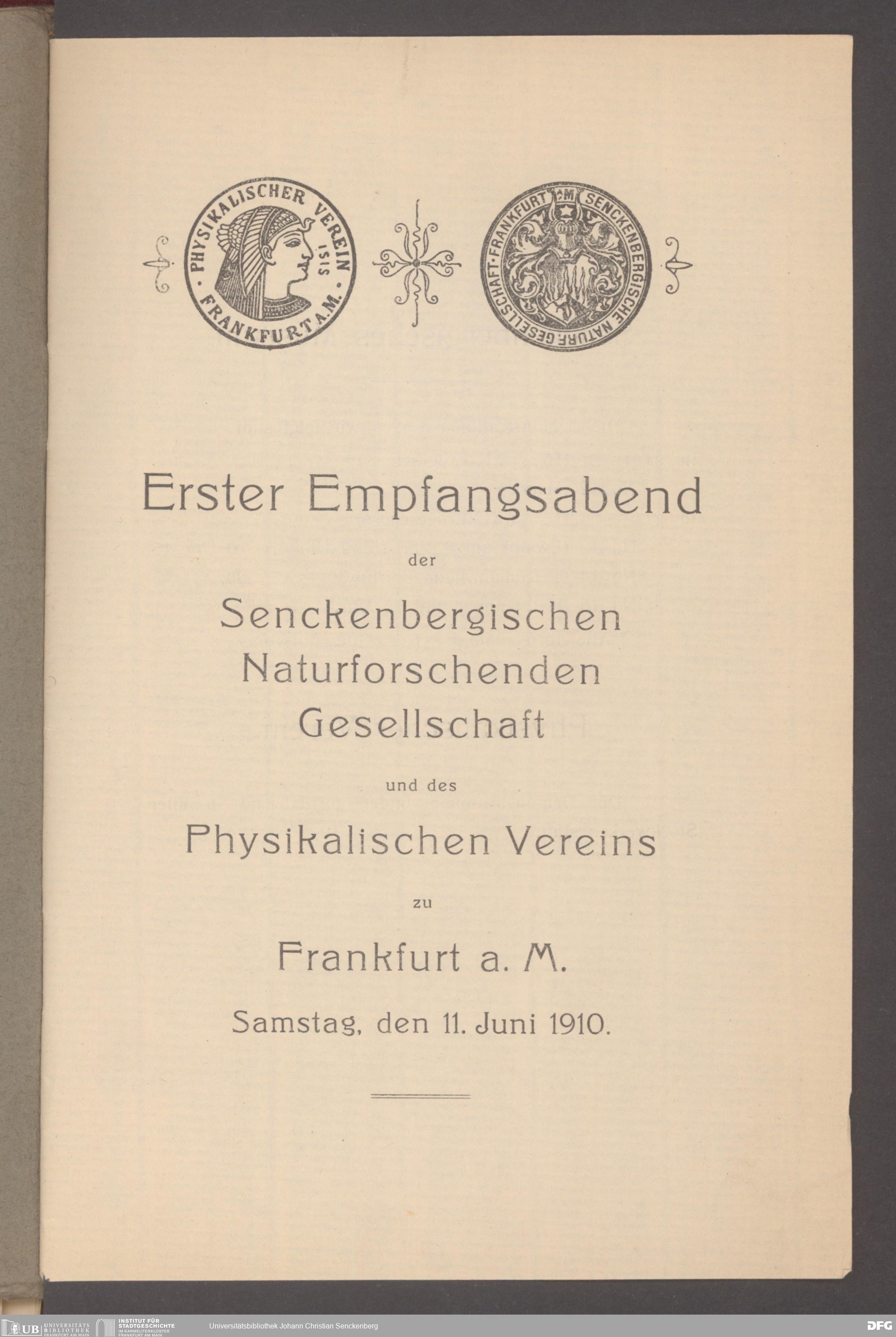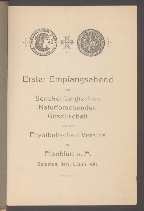V176 Senckenberg Gesellschaft für Naturforschung, 497 - Eintrittskarten, Lieder- und Programmhefte sowie Speisekarten von Jahresfeiern, Doktorjubiläen und der Feier zur Eröffnung des Museums