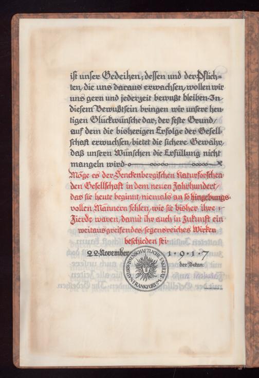 V176 Senckenberg Gesellschaft für Naturforschung, 501 - Glückwunschschreiben der naturwissenschaftlichen Fakultät der Universität Frankfurt a. M. zur Jahrhundertfeier der Senckenbergischen Naturforschenden Gesellschaft