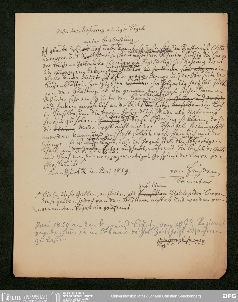 V176 Senckenberg Gesellschaft für Naturforschung, 504 - Vortragsnotizen von Carl von Heyden