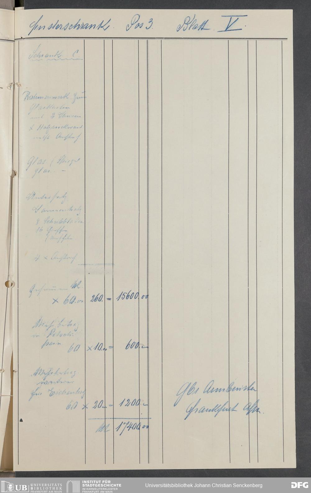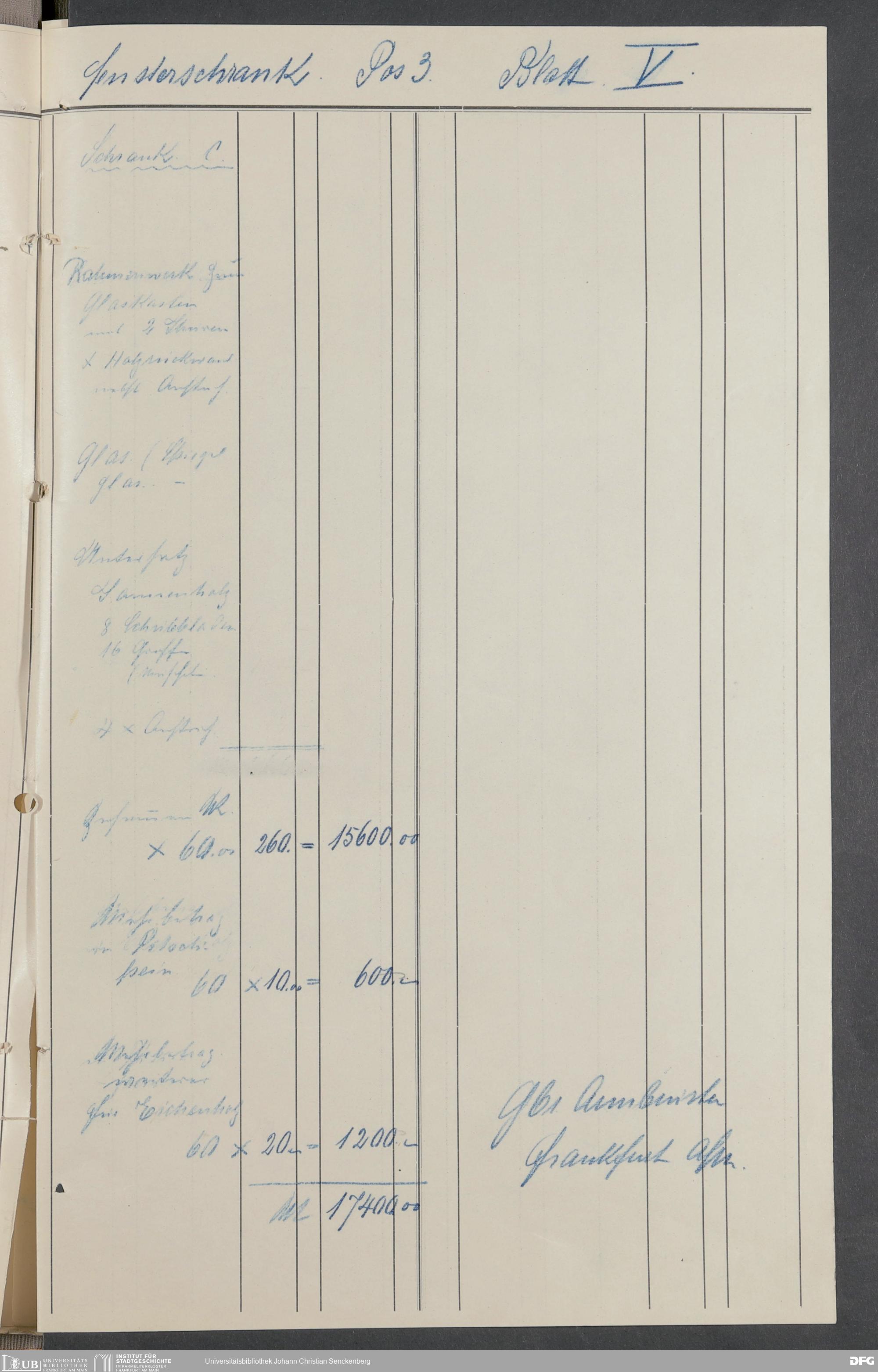 V176 Senckenberg Gesellschaft für Naturforschung, 520 - Ankauf von Museumsschränken bei der Firma Gebrüder Armbrüster