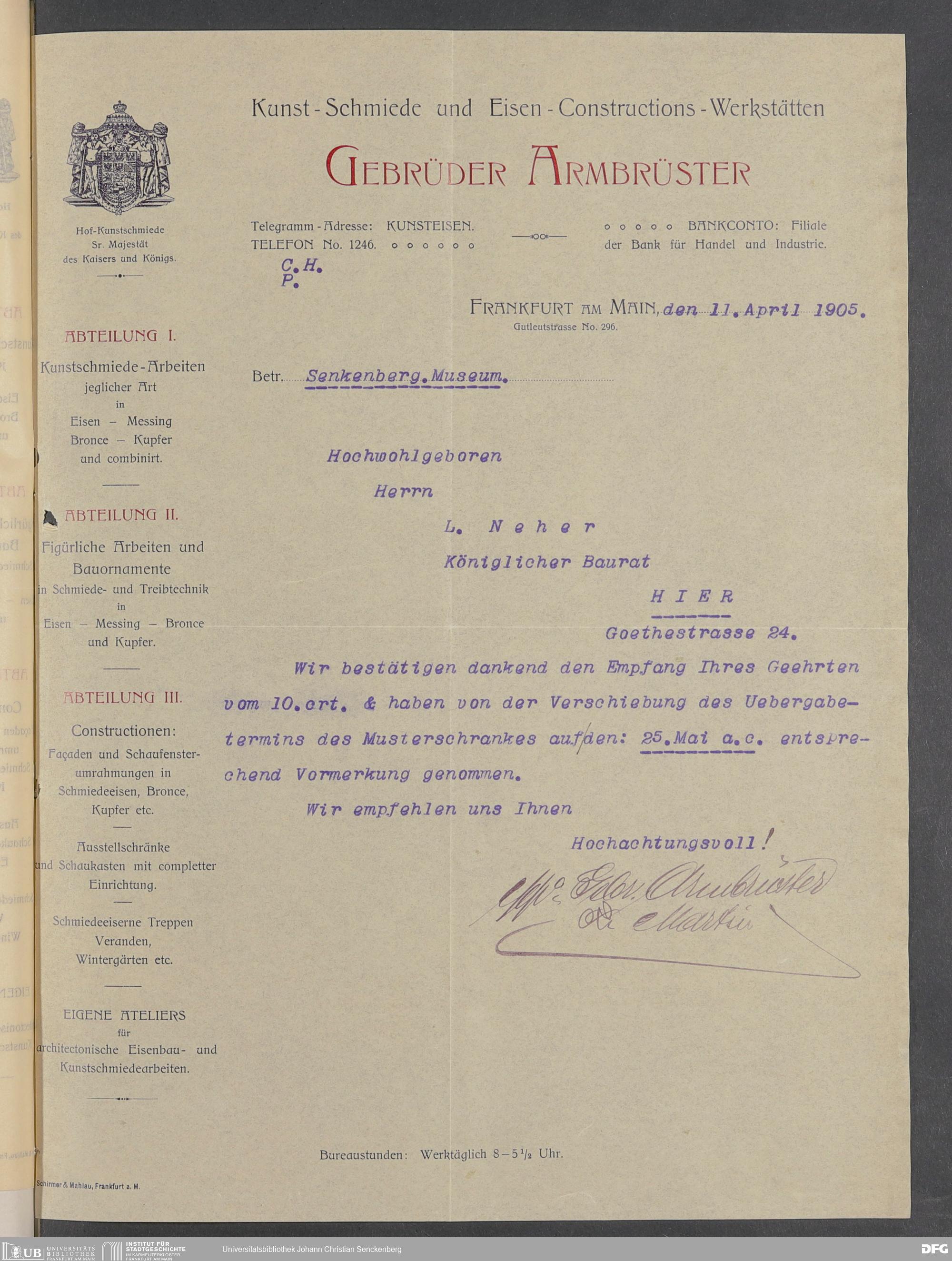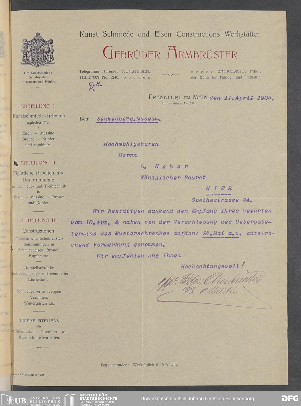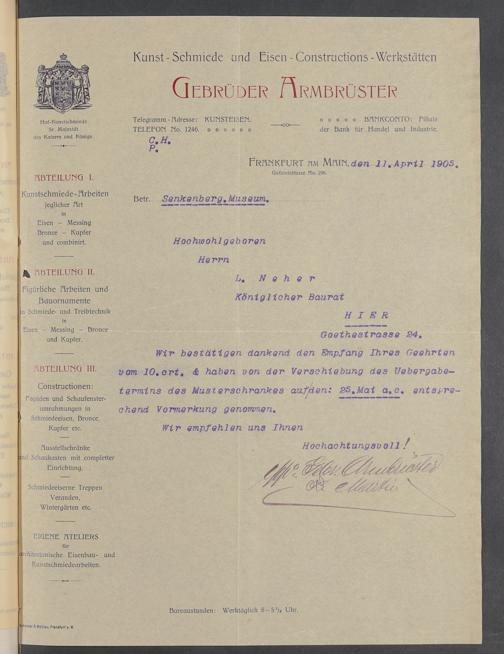 V176 Senckenberg Gesellschaft für Naturforschung, 520 - Ankauf von Museumsschränken bei der Firma Gebrüder Armbrüster
