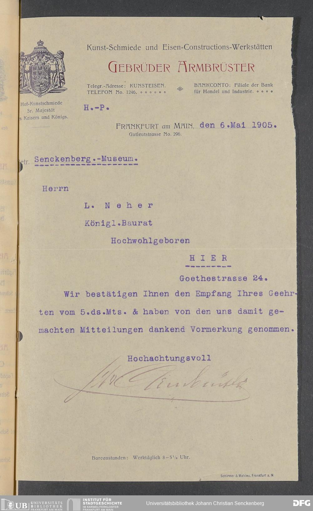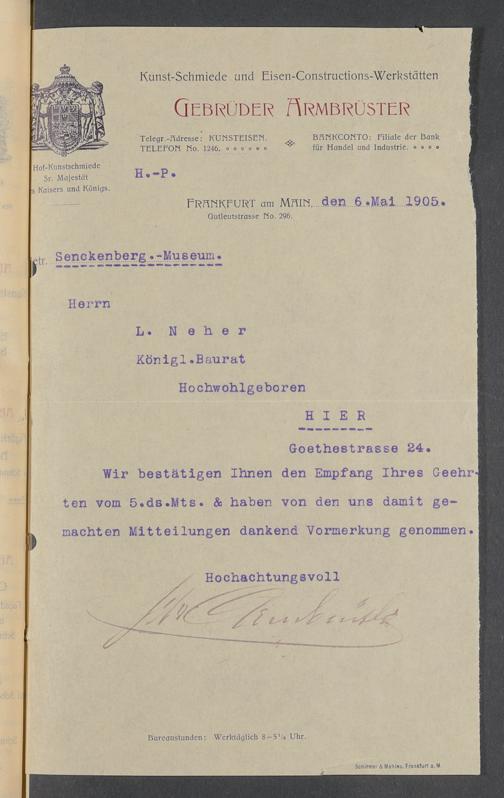 V176 Senckenberg Gesellschaft für Naturforschung, 520 - Ankauf von Museumsschränken bei der Firma Gebrüder Armbrüster
