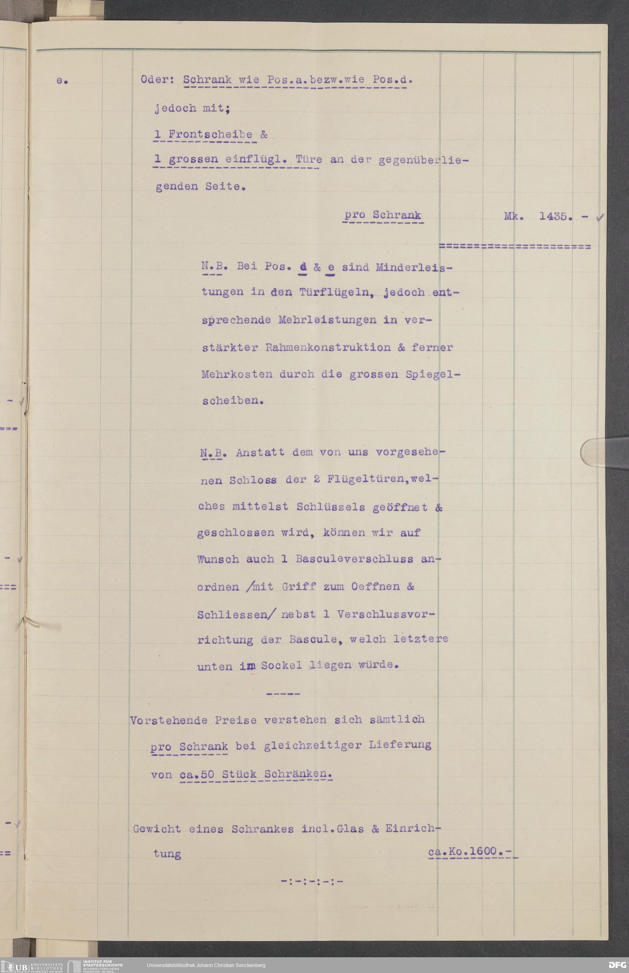 V176 Senckenberg Gesellschaft für Naturforschung, 520 - Ankauf von Museumsschränken bei der Firma Gebrüder Armbrüster