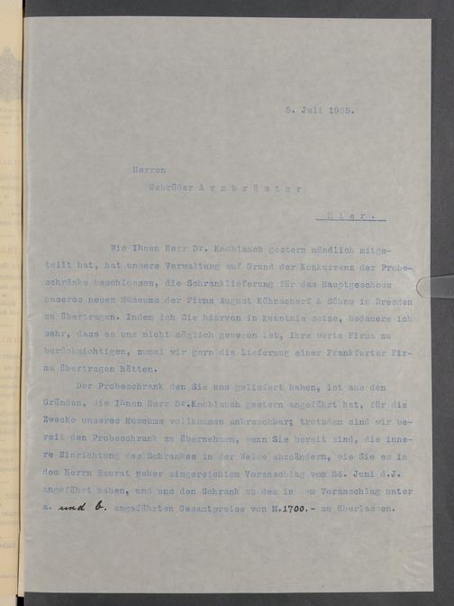 V176 Senckenberg Gesellschaft für Naturforschung, 520 - Ankauf von Museumsschränken bei der Firma Gebrüder Armbrüster