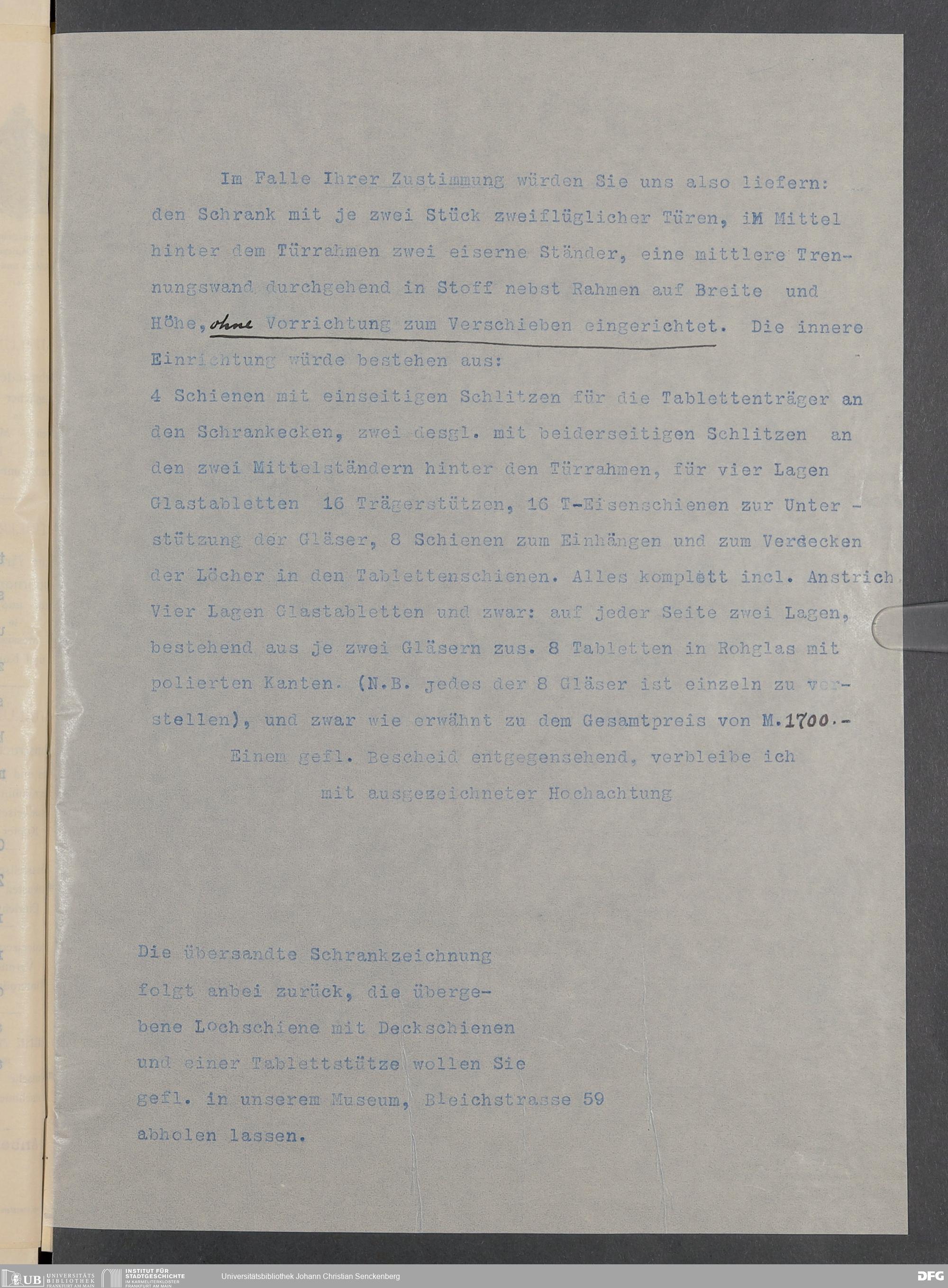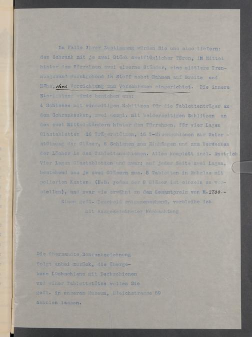 V176 Senckenberg Gesellschaft für Naturforschung, 520 - Ankauf von Museumsschränken bei der Firma Gebrüder Armbrüster