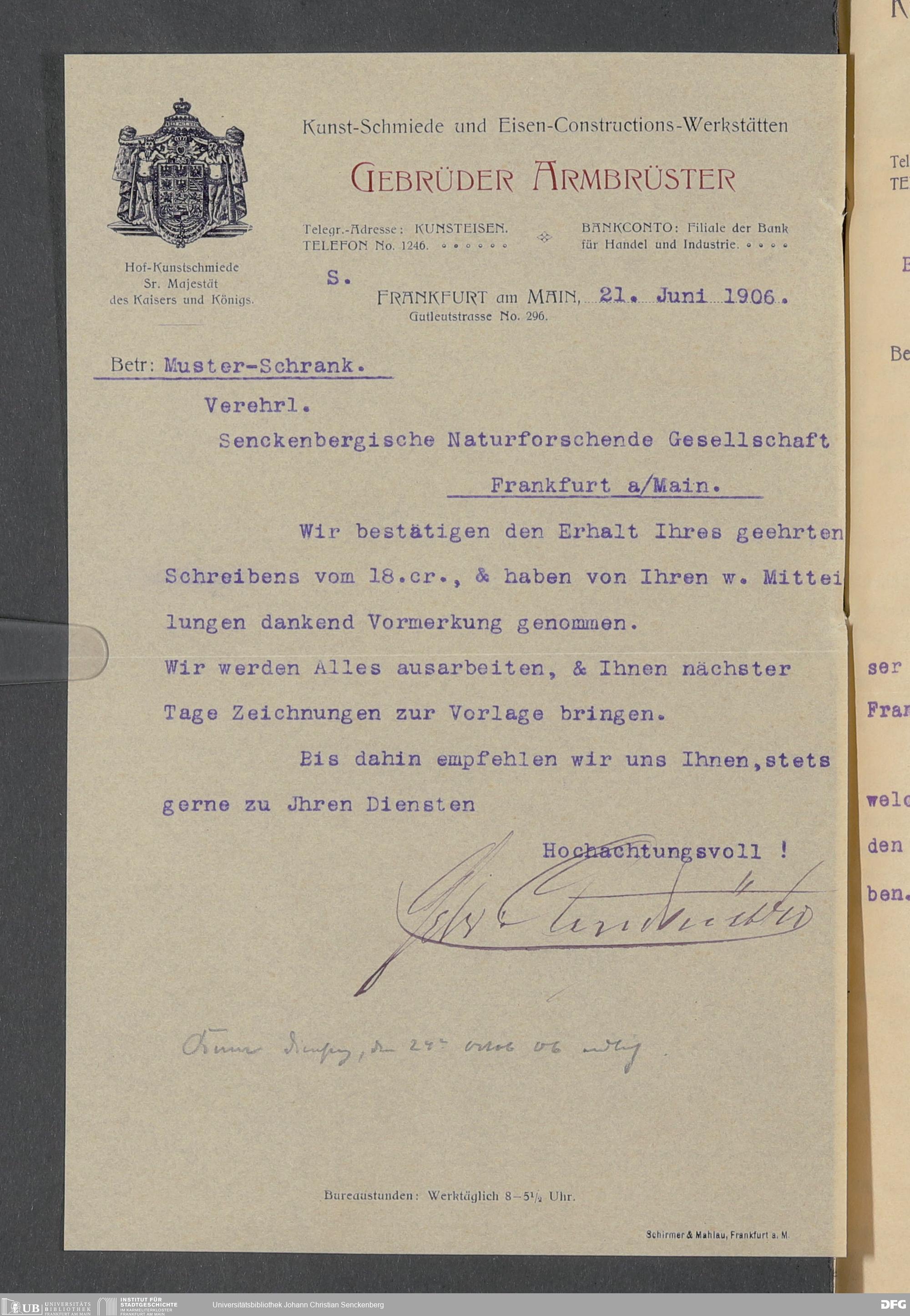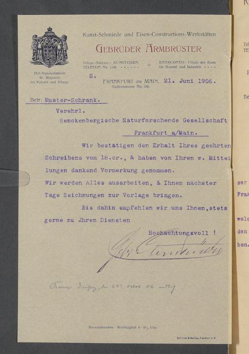 V176 Senckenberg Gesellschaft für Naturforschung, 520 - Ankauf von Museumsschränken bei der Firma Gebrüder Armbrüster