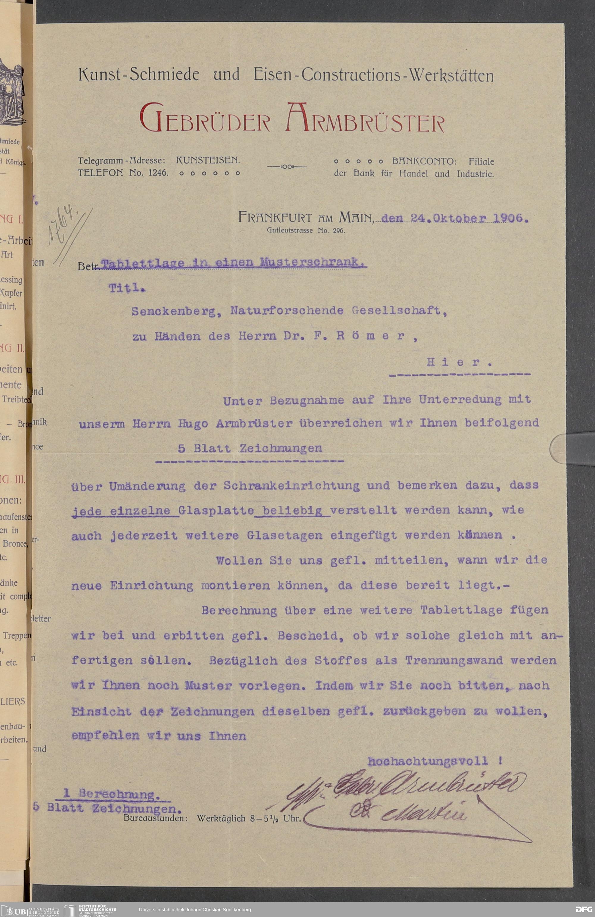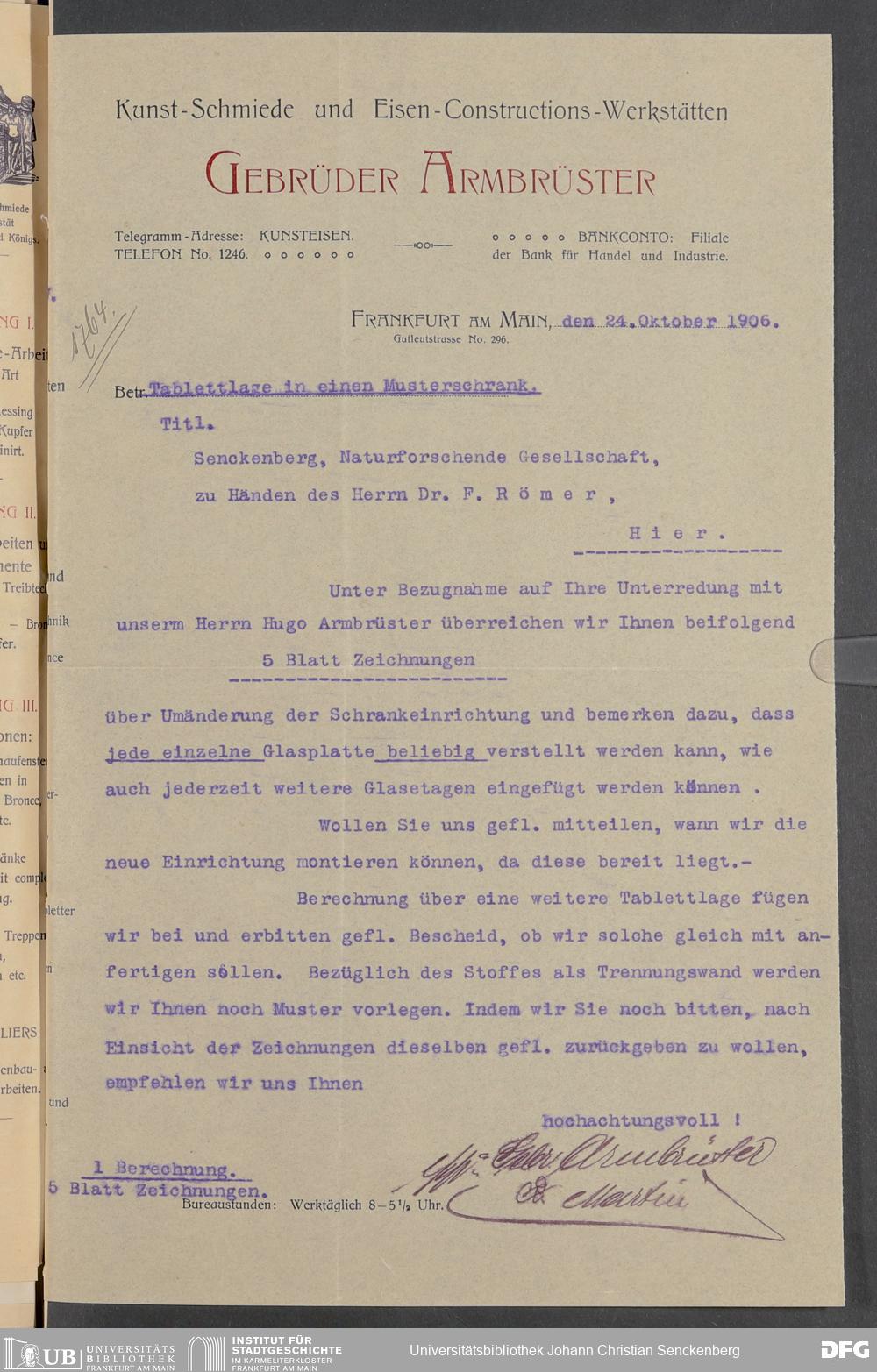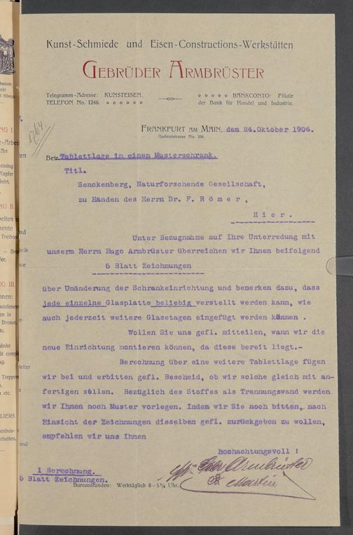 V176 Senckenberg Gesellschaft für Naturforschung, 520 - Ankauf von Museumsschränken bei der Firma Gebrüder Armbrüster