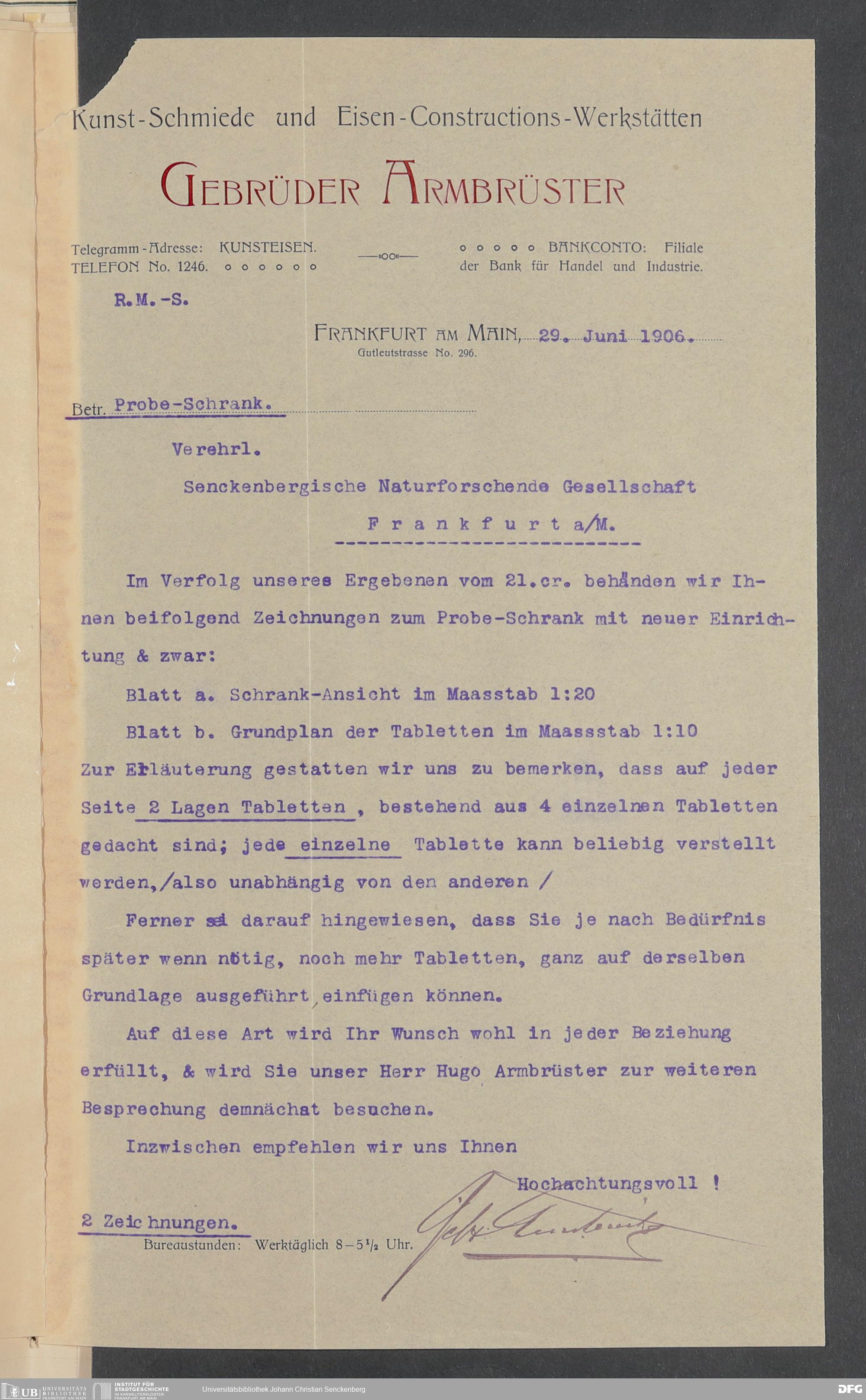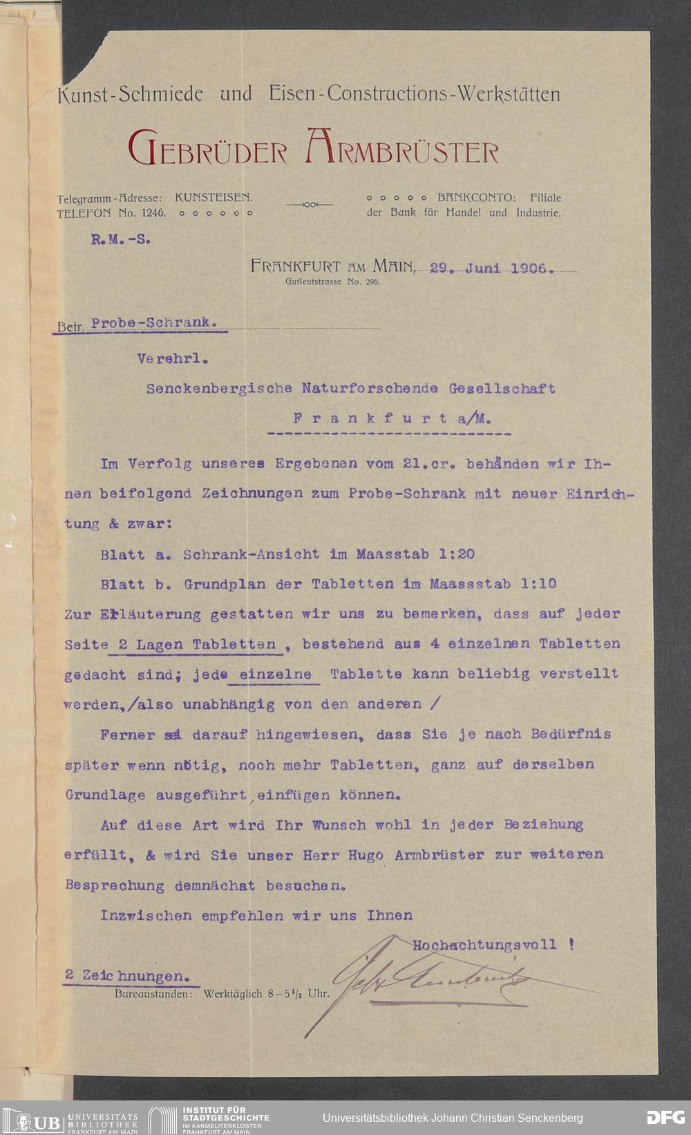 V176 Senckenberg Gesellschaft für Naturforschung, 520 - Ankauf von Museumsschränken bei der Firma Gebrüder Armbrüster