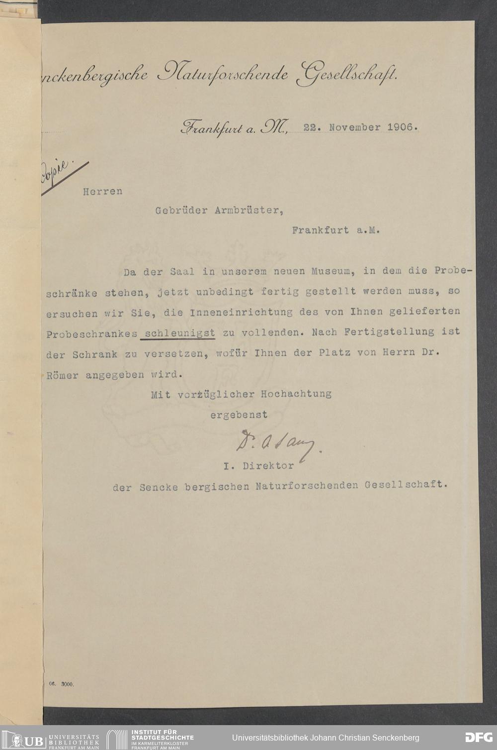 V176 Senckenberg Gesellschaft für Naturforschung, 520 - Ankauf von Museumsschränken bei der Firma Gebrüder Armbrüster