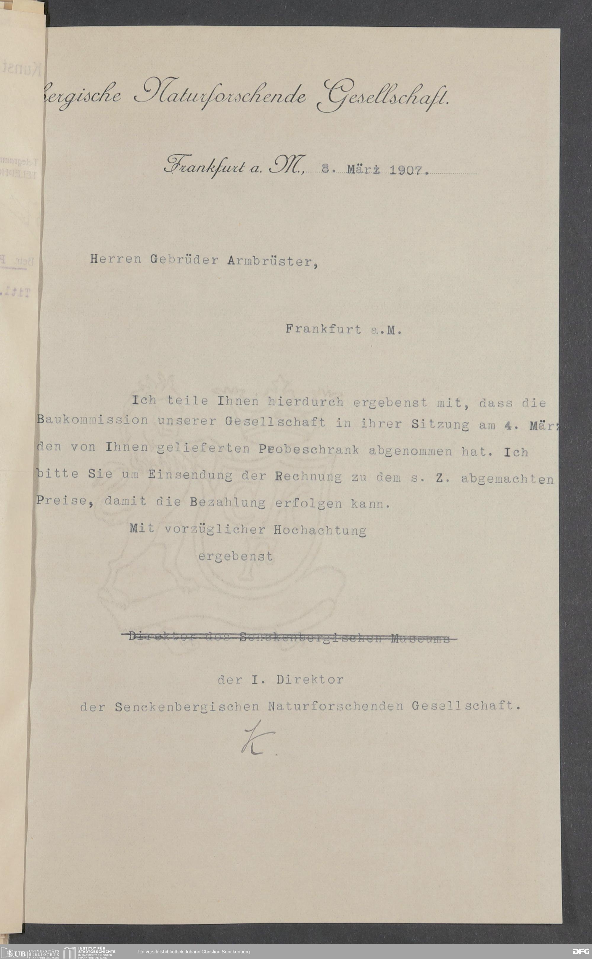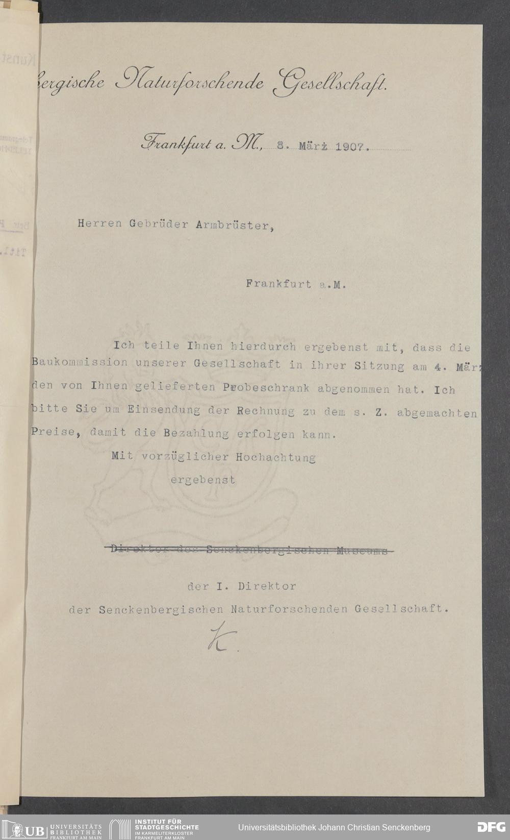 V176 Senckenberg Gesellschaft für Naturforschung, 520 - Ankauf von Museumsschränken bei der Firma Gebrüder Armbrüster