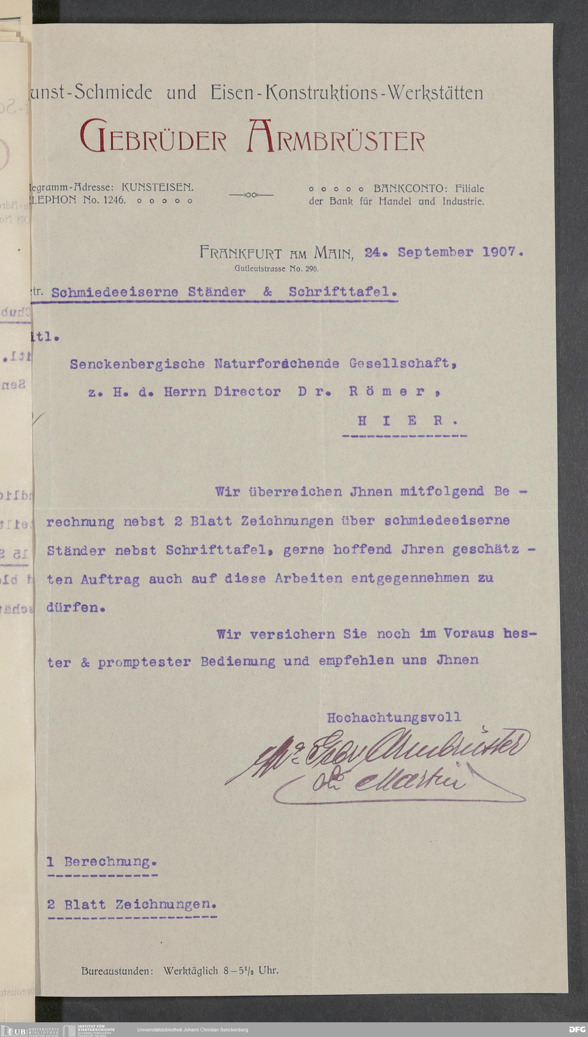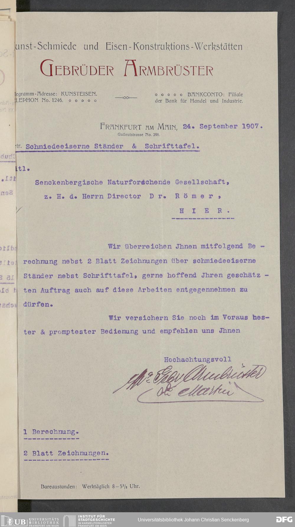 V176 Senckenberg Gesellschaft für Naturforschung, 520 - Ankauf von Museumsschränken bei der Firma Gebrüder Armbrüster
