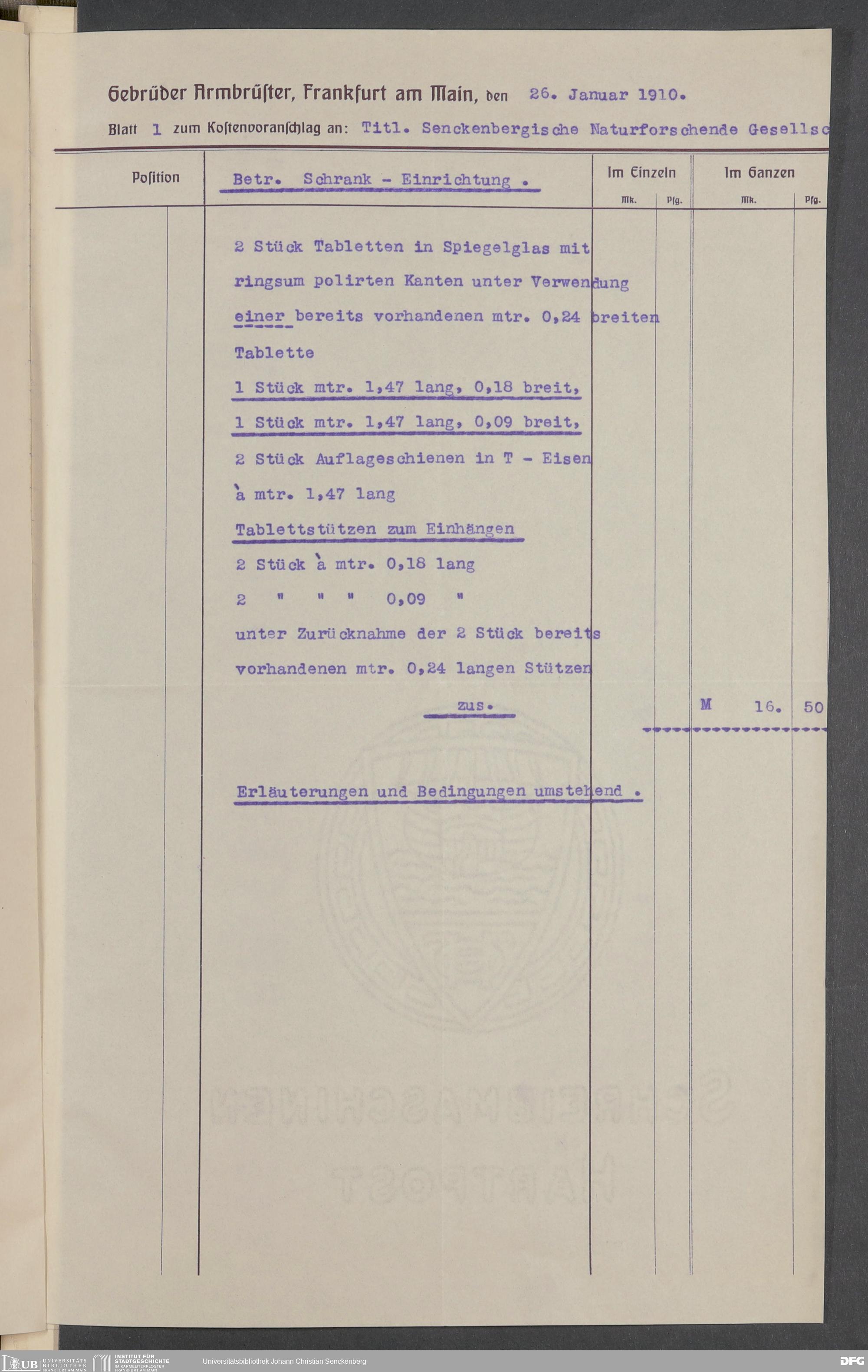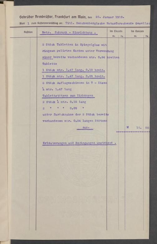 V176 Senckenberg Gesellschaft für Naturforschung, 520 - Ankauf von Museumsschränken bei der Firma Gebrüder Armbrüster